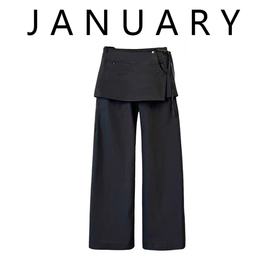JANUARY一月~废土风假两件搭片屁帘裙裤女春夏宽松阔腿绑带休闲裤