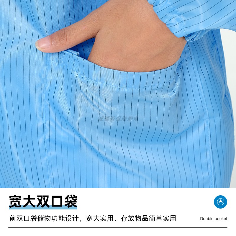 蓝色防静电无尘服上衣工厂净化车间分体条纹防尘工作服可定制LOGO