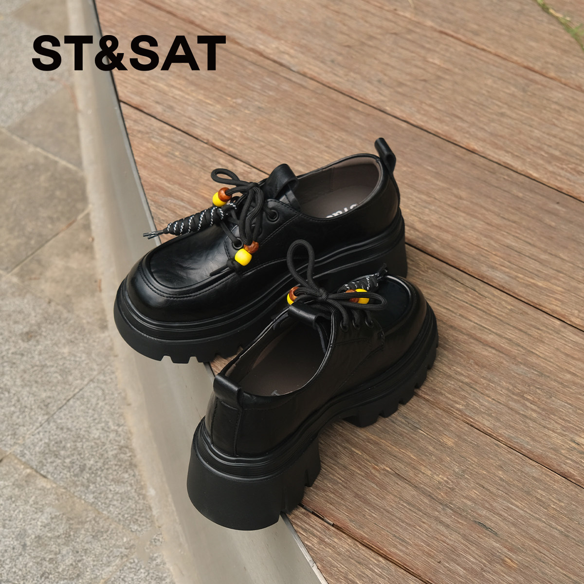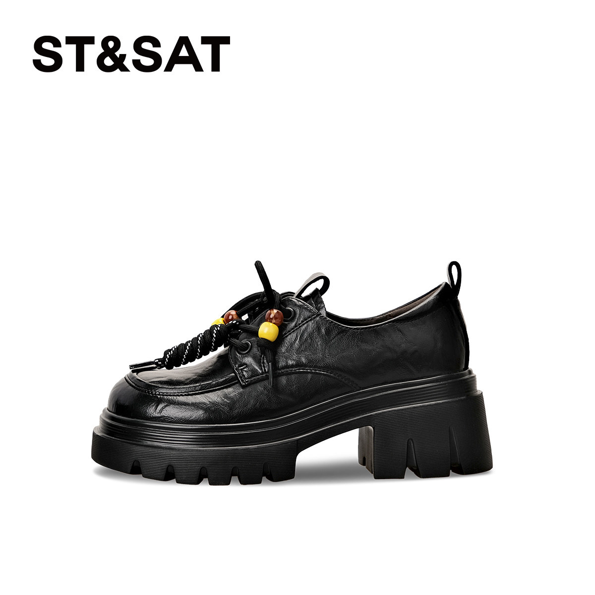 【简约主义】星期六真皮厚底圆头乐福鞋女鞋春秋英伦风绑带小皮鞋