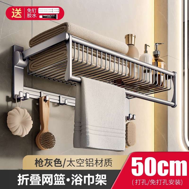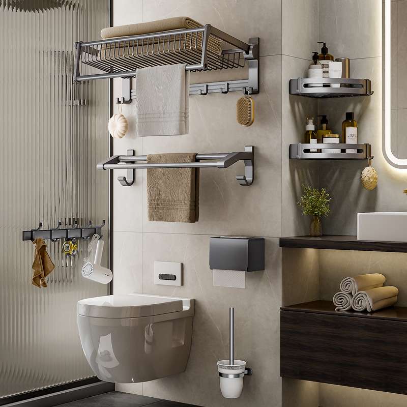 枪灰色网篮浴巾架免打孔卫生间置物架浴室毛巾架卫浴五金挂件套装