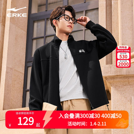 鸿星尔克外套男2025春秋新款男士加绒运动针织立领夹克开衫卫衣