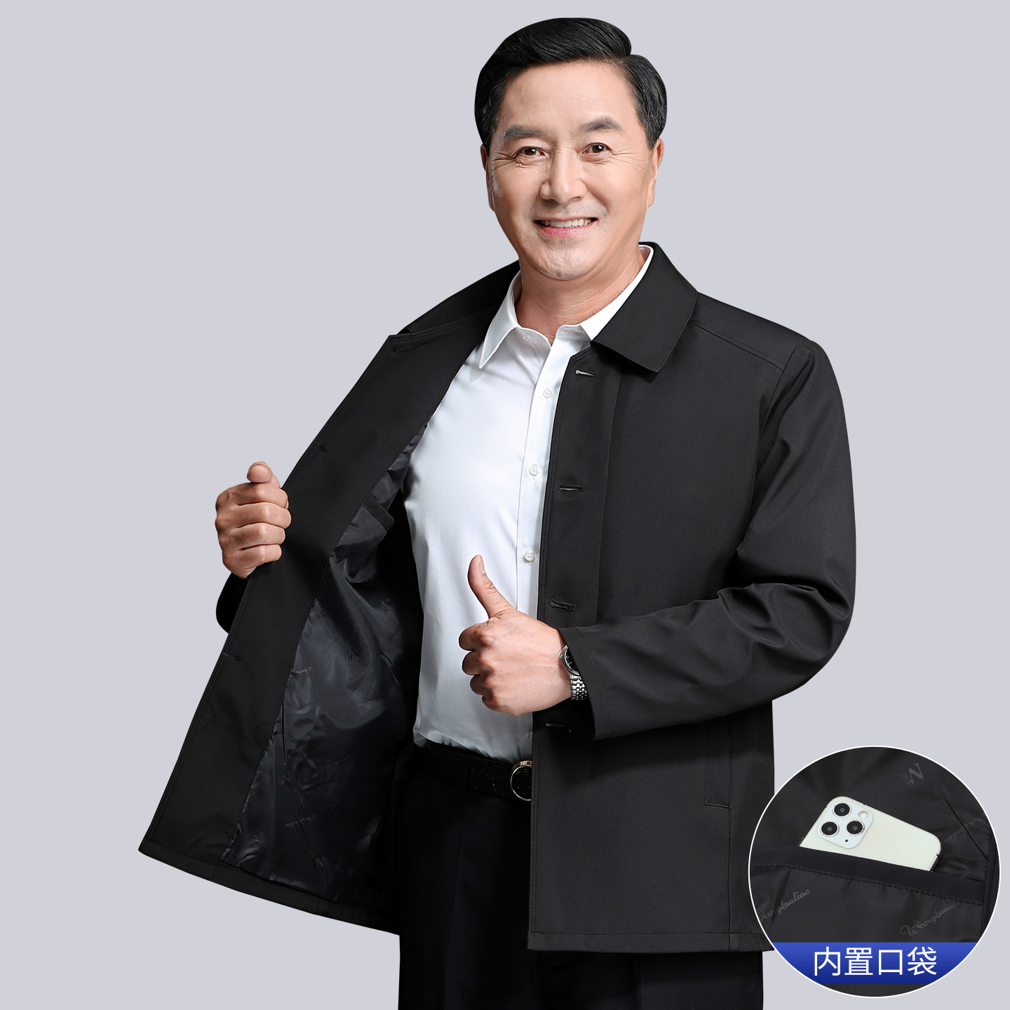 爸爸外套男中老年纽扣款休闲衣服男装2025春秋季新款领导行政夹克