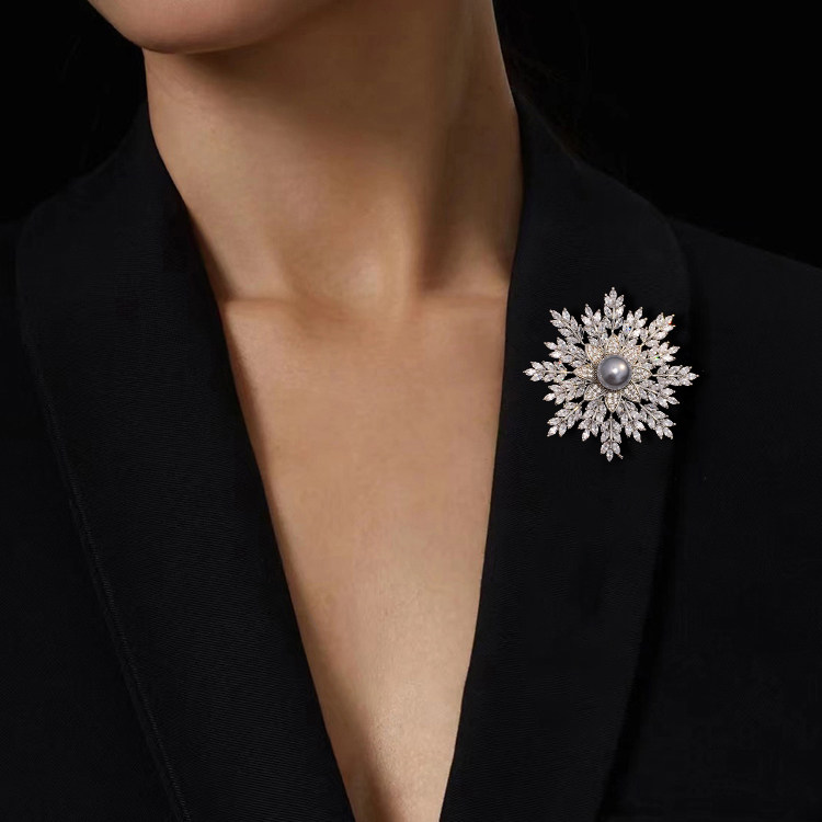 dmd迪曼达银色雪花胸针女百搭