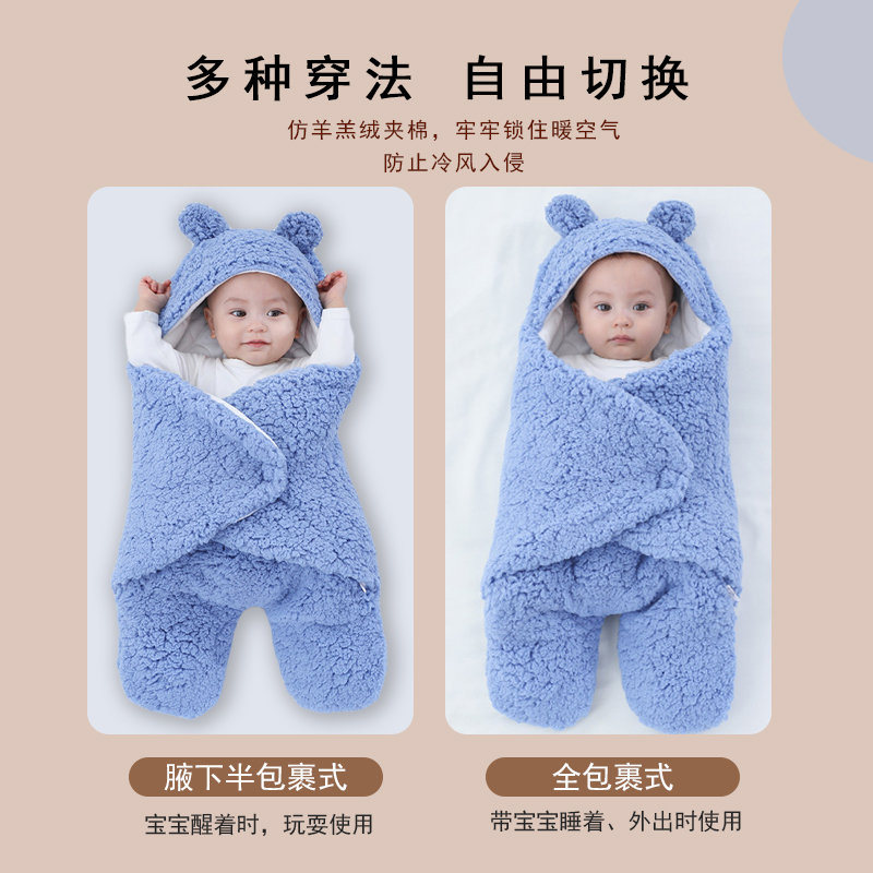 婴儿抱被秋冬季加厚睡袋新生包裹初生宝宝冬天冬款纯棉外出包被