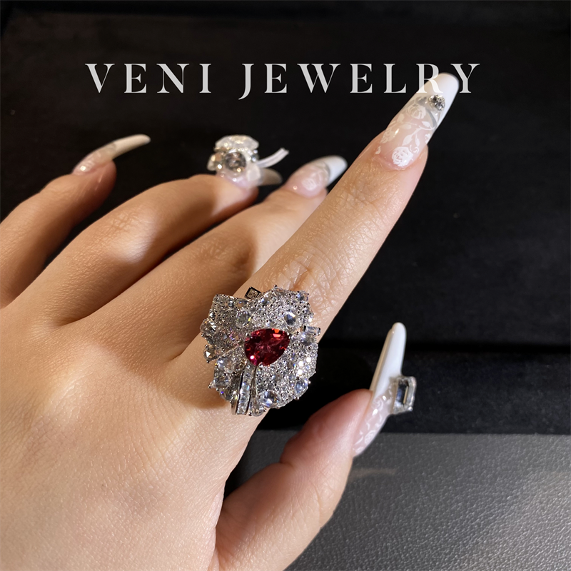 Veni珠宝 眼泪女王 培育红碧玺戒指豪镶奢华晚宴925银镀18K金H85