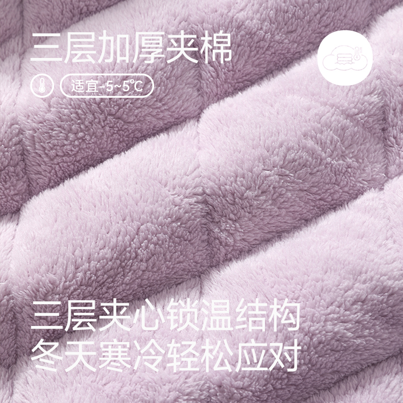 芬腾冬季珊瑚绒夹棉情侣睡衣男女士三层加厚抗静电家居服棉袄套装