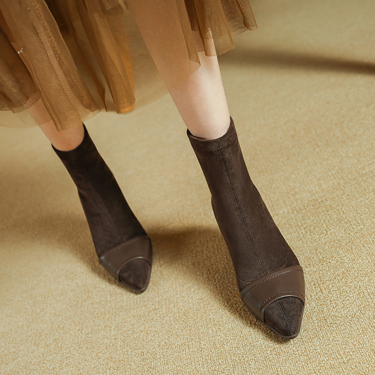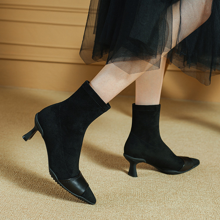 巨好看的法式气质真皮尖头短靴女细跟2025新款短筒靴子秋冬时尚