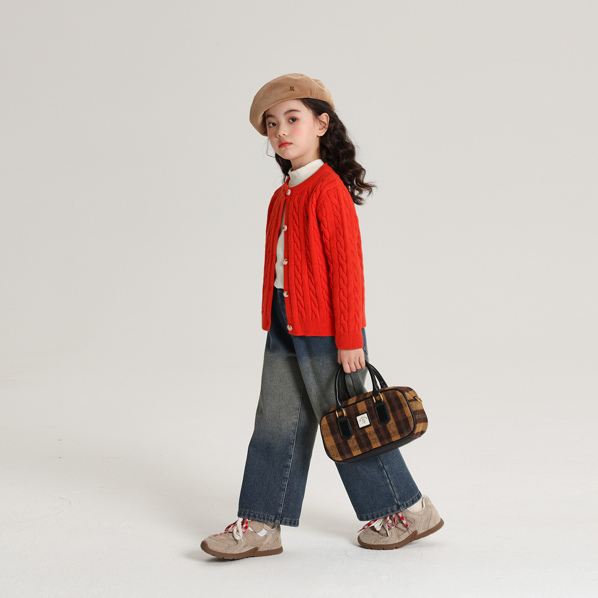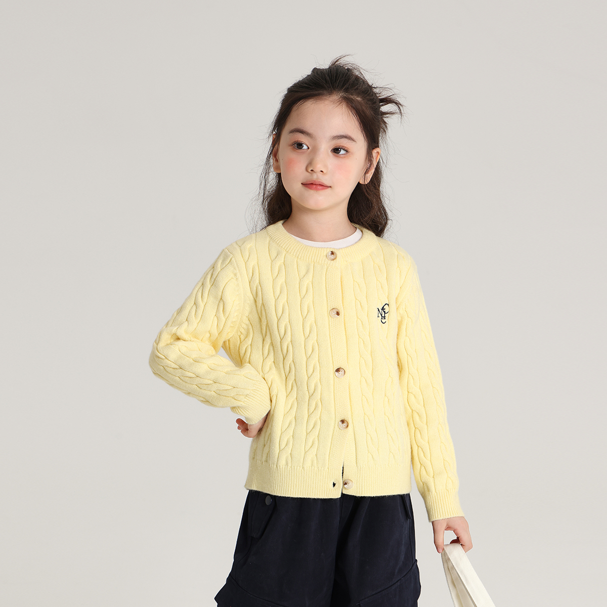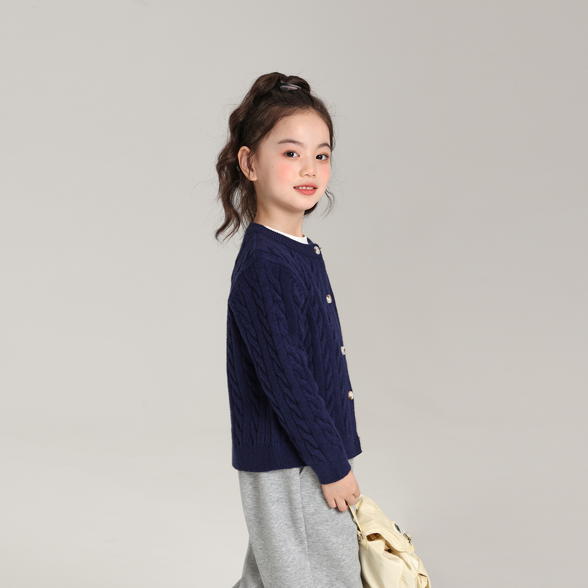布丁哈鲁秋装女童2025秋冬季新款百搭儿童圆领毛衣针织开衫