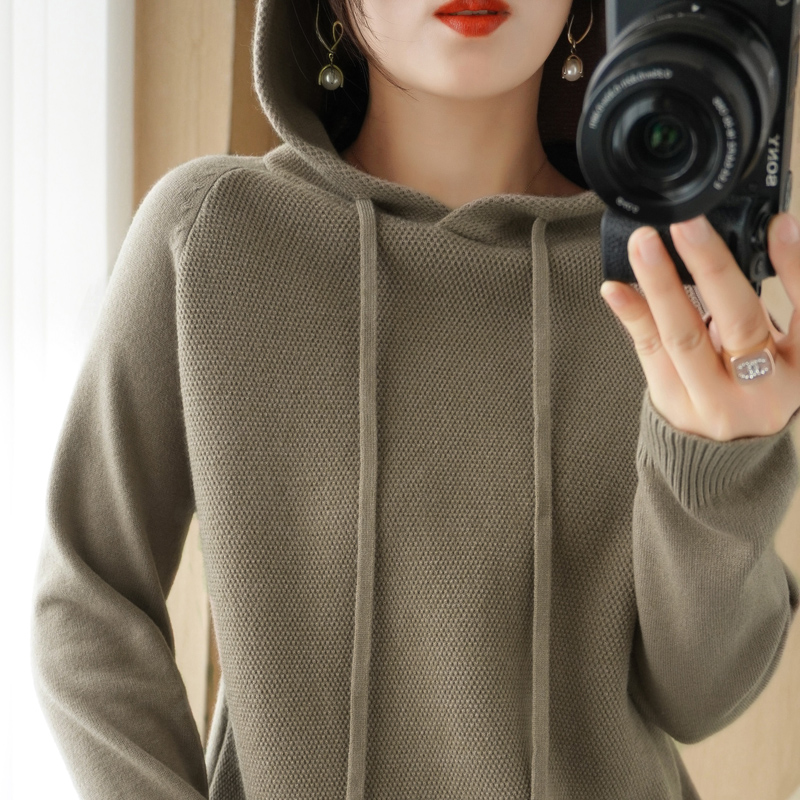 秋冬新款连帽套头长袖毛衣女宽松休闲加厚打底针织衫保暖卫衣帽衫