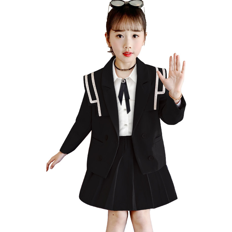 女童百褶裙套装2022春秋季新款韩版洋气中大女童海军领西装套裙潮