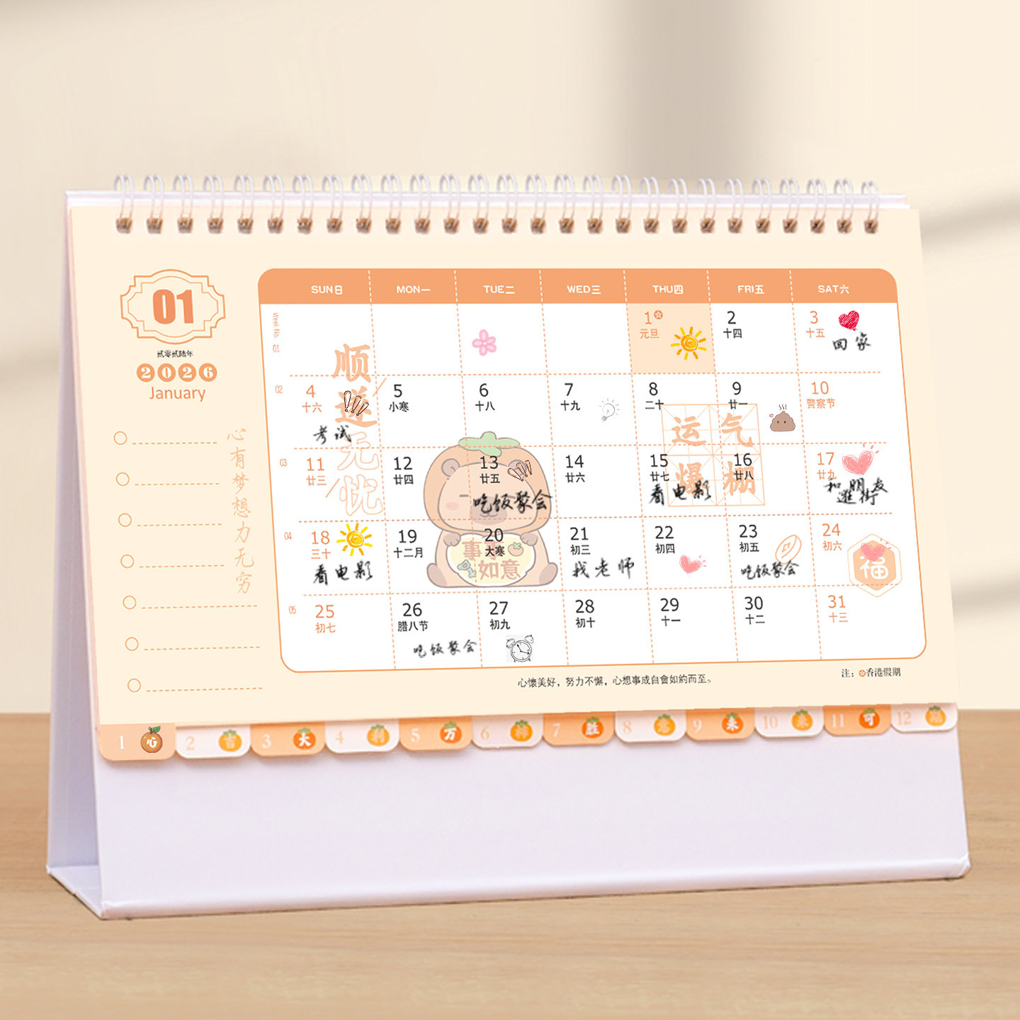 2026年台历创意日历备忘简约小清新办公桌面摆件韩版窗花工作小月历翻页马年台历计划本式记事本日历定制