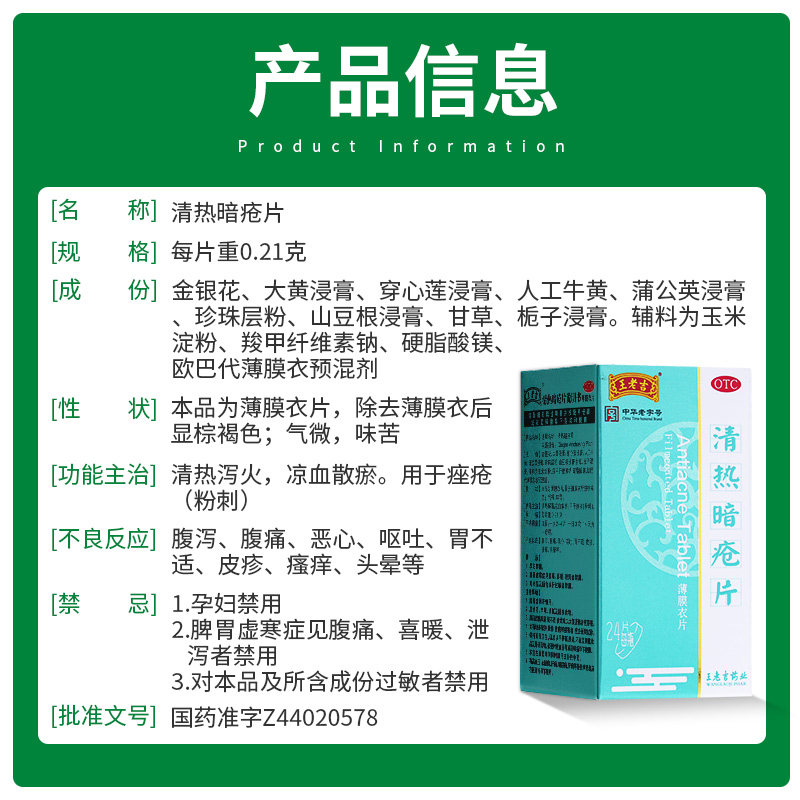 【王老吉】清热暗疮片0.21g*24片*1瓶/盒