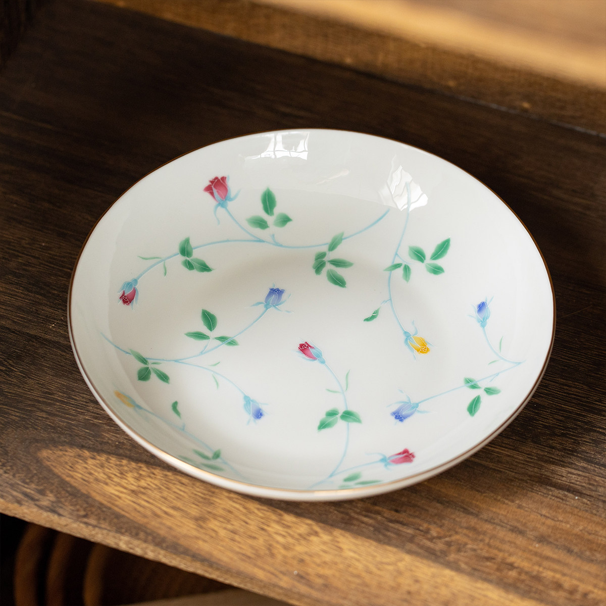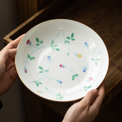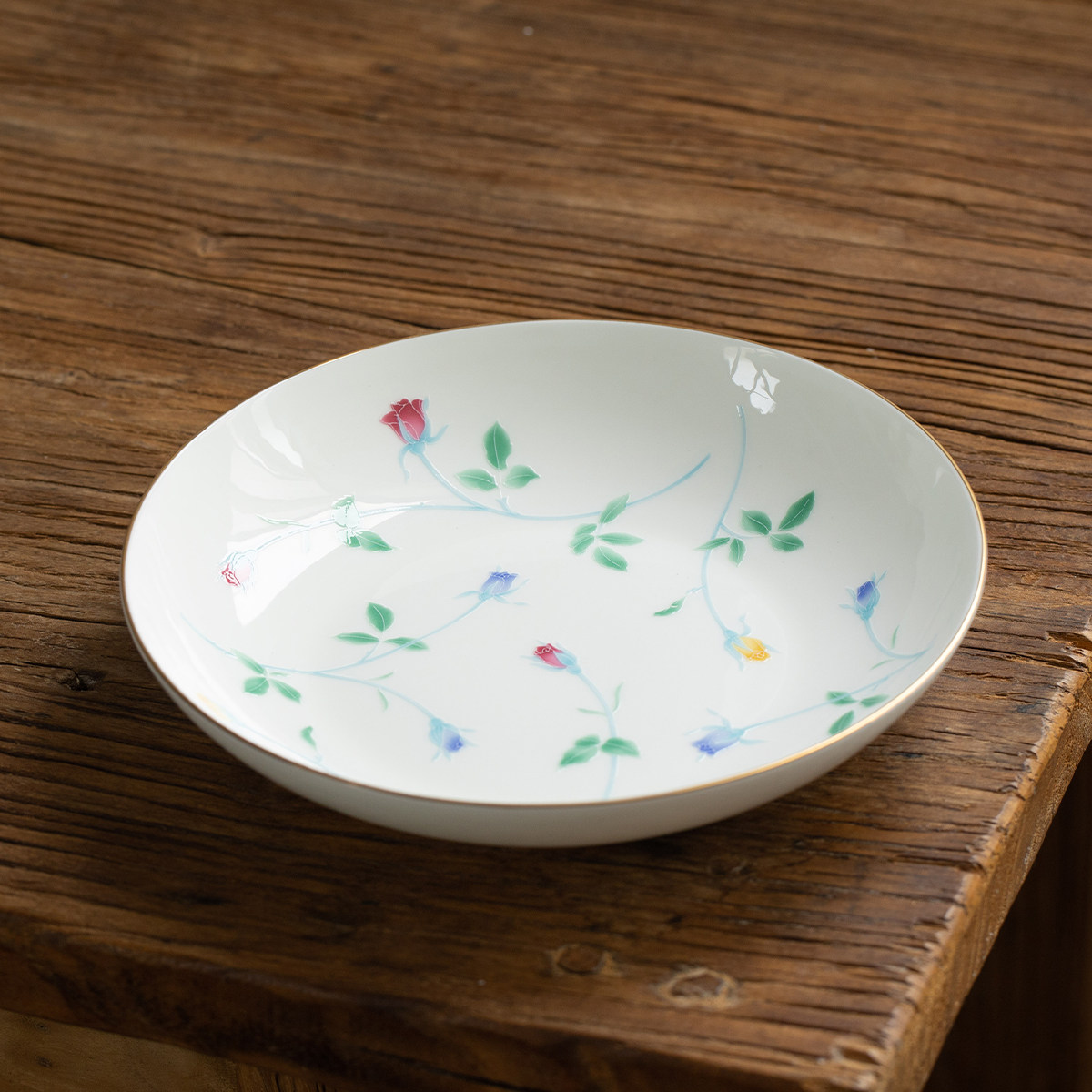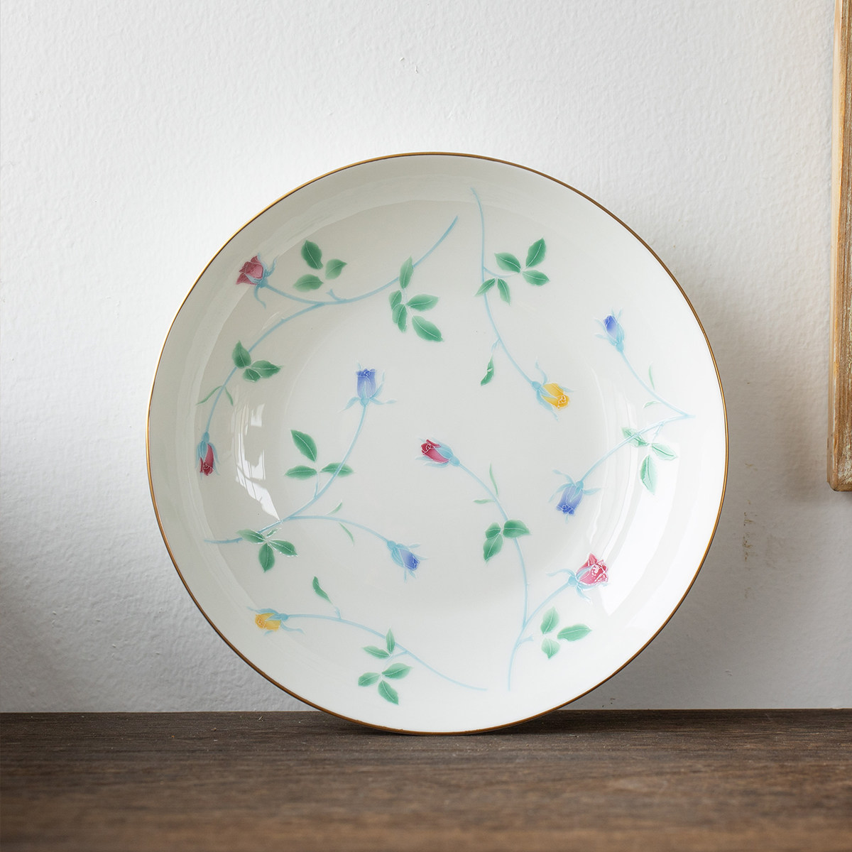 日本进口白瓷餐具中古风玫瑰餐盘家用早餐盘意面盘深菜盘咖喱饭盘