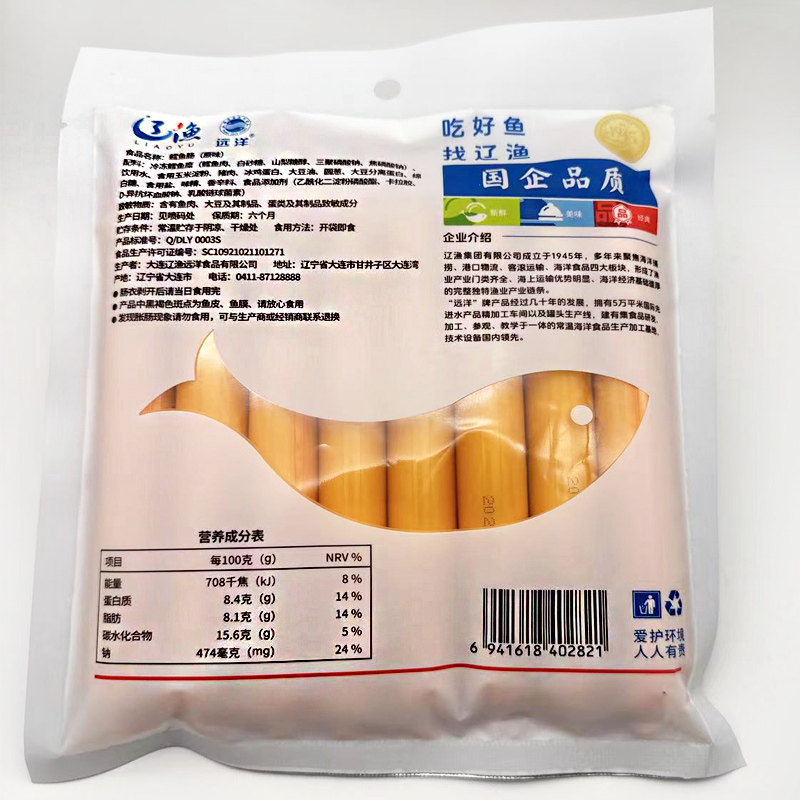 大连特产海鲜零食辽渔远洋原味金枪鱼鳕鱼肠320克(40g*8儿童即食