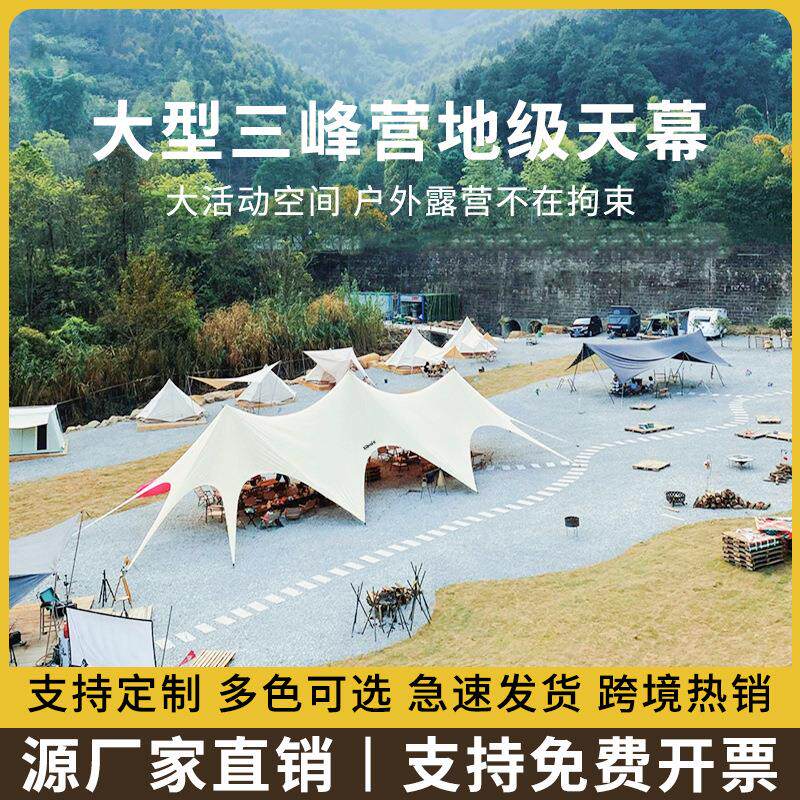 户外超大型三峰帐篷云顶穹顶露营客厅天幕巨型八爪鱼双峰莲花天幕