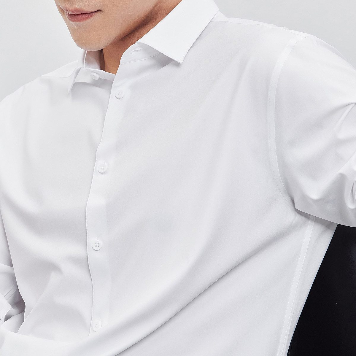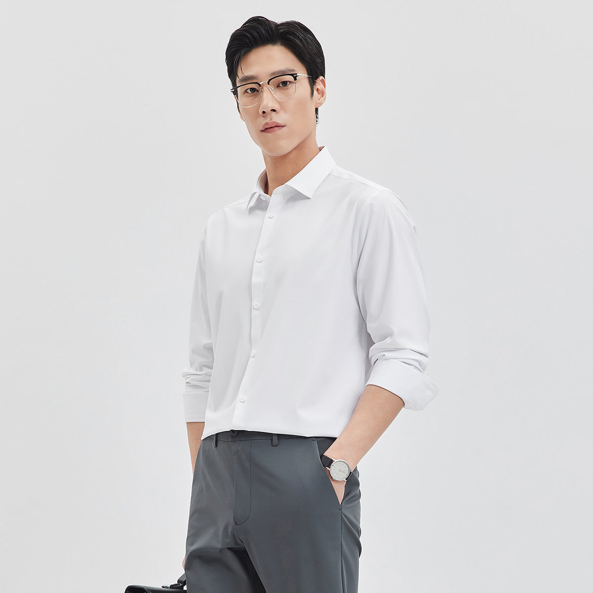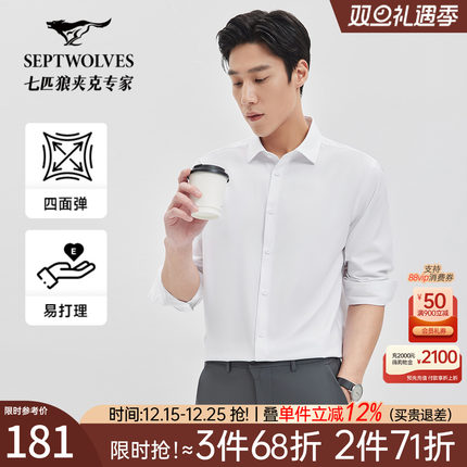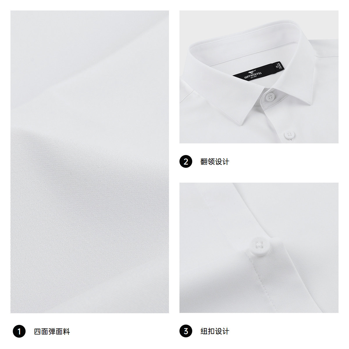 七匹狼长袖衬衫男士2025春季新款商务休闲翻领polo衫白色衬衣男装