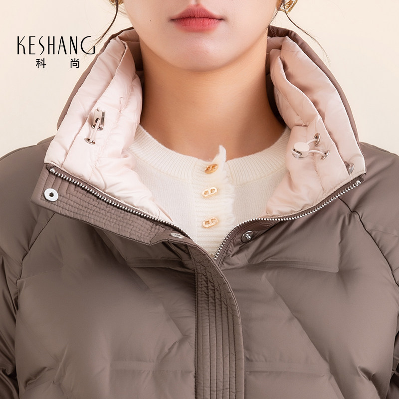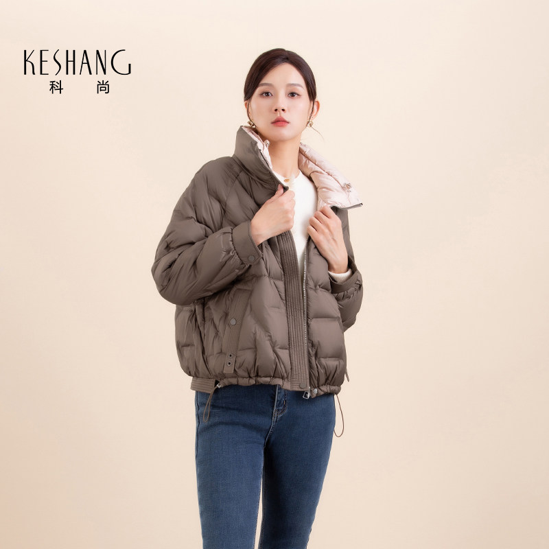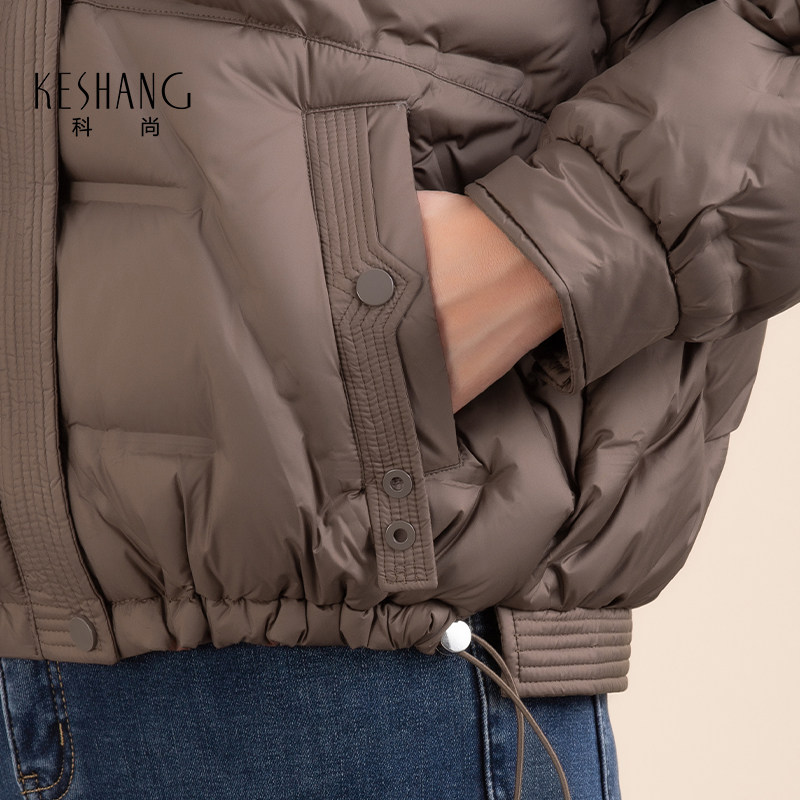 科尚咖啡短款羽绒服女2025冬季新款休闲风宽松面包服连帽立领外套