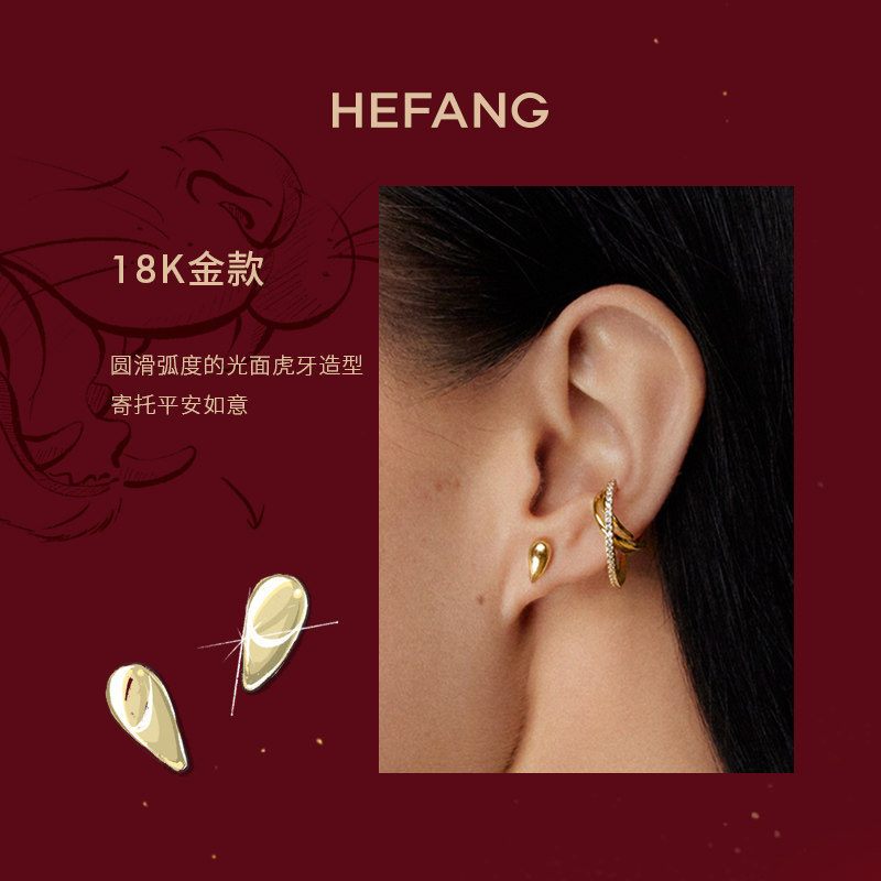 [HEFANG何方奥莱]小虎牙K金耳钉18K金轻奢耳环耳饰品女生日礼物