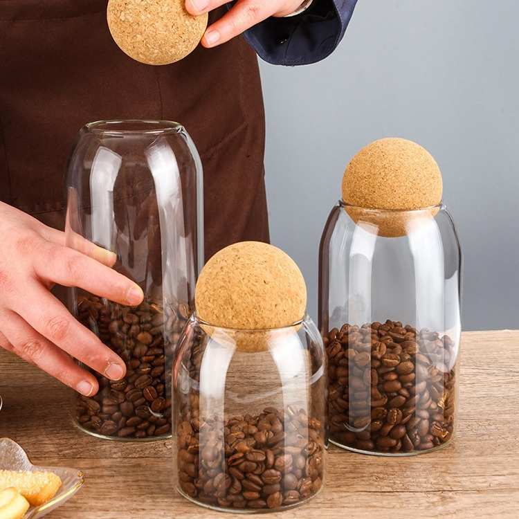 高硼硅玻璃密封罐 透明咖啡豆罐软木塞茶叶罐 厨房杂粮密封玻璃罐