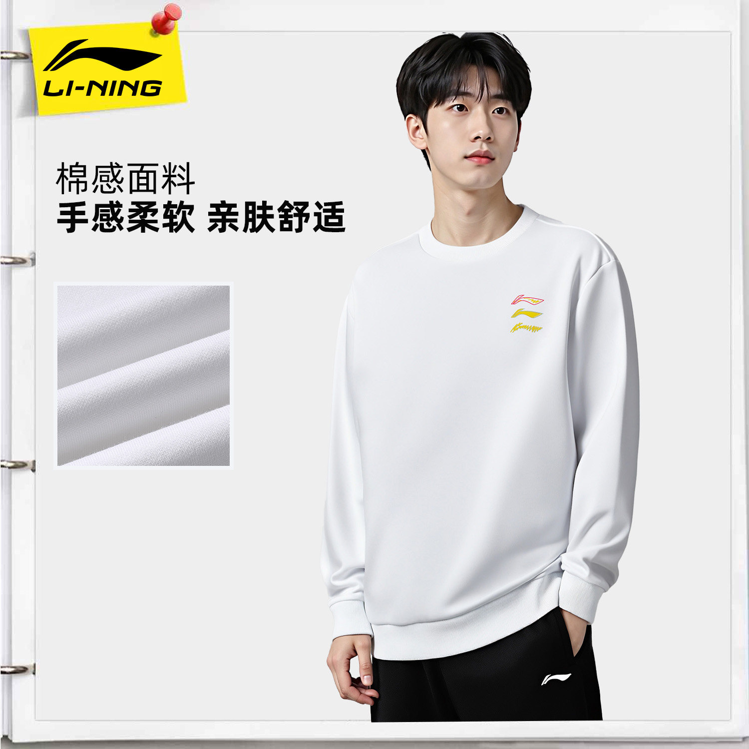 李宁运动卫衣男子2026秋冬季休闲圆领加绒保暖舒适宽松套头衫