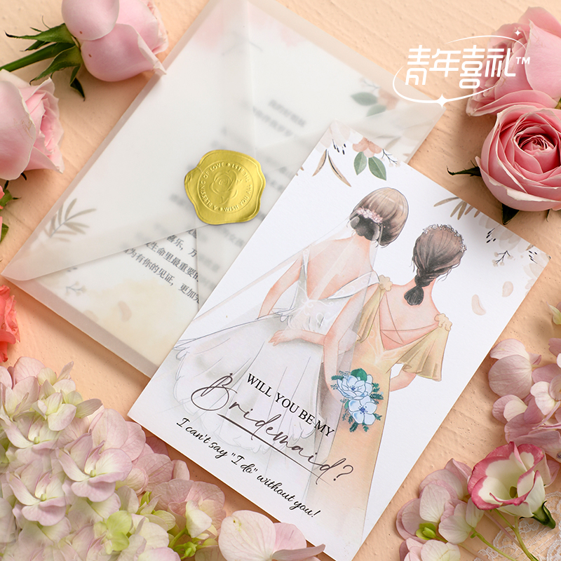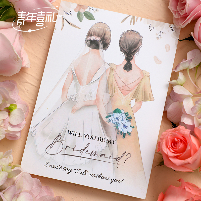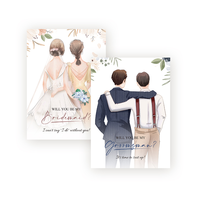 ins风背影系列手绘插画伴娘伴郎邀请卡伴手礼手写卡答谢结婚请柬