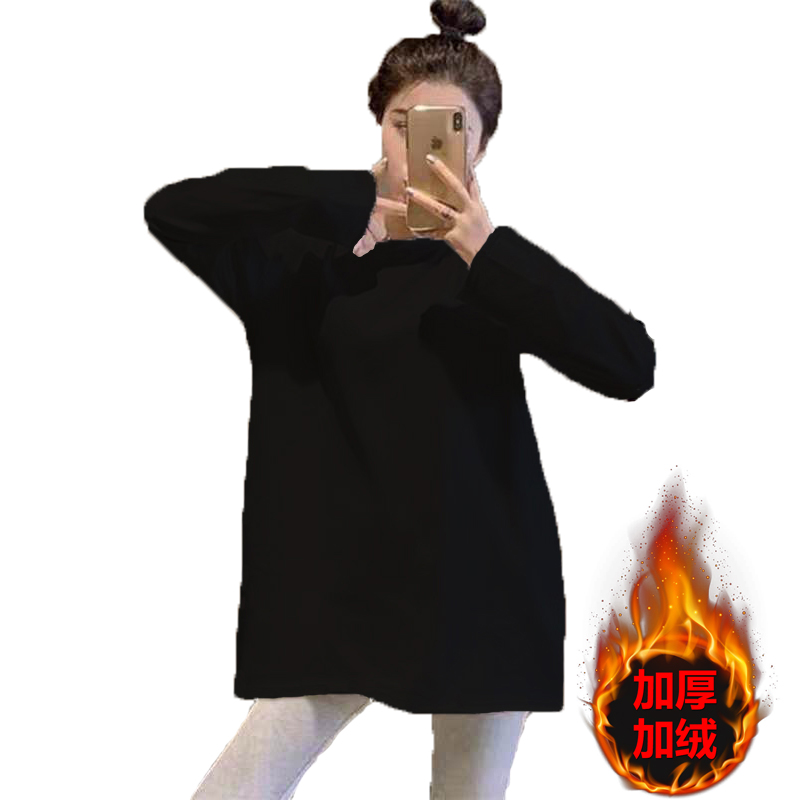 孕妇秋装2021新款德绒磨毛保暖上衣宽松长袖t恤女中长款打底衫潮
