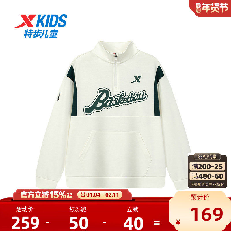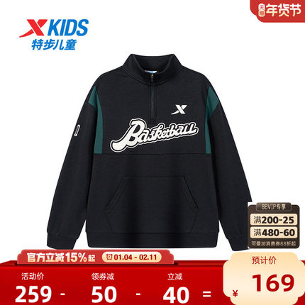 【商场同款】特步童装秋冬新款男童潮流套头卫衣大童运动儿童上衣