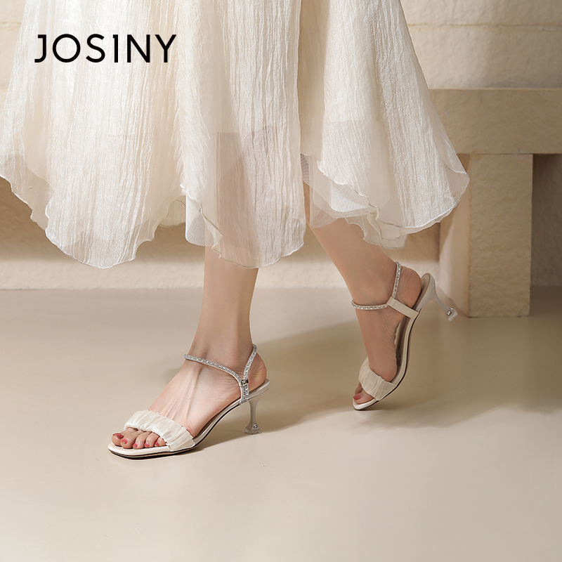卓诗尼高跟凉鞋女2025新款春夏细跟仙女风配裙子绝美一字带凉鞋