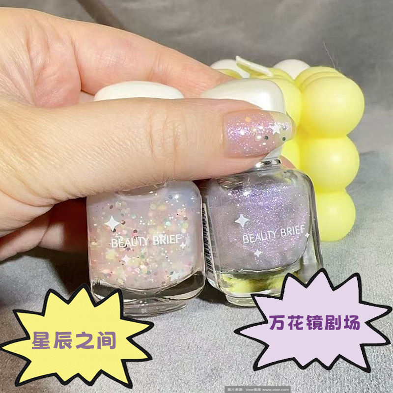 miniso名创优品水性指甲油可撕拉樱花粉色女梦幻亮片2025新款免烤