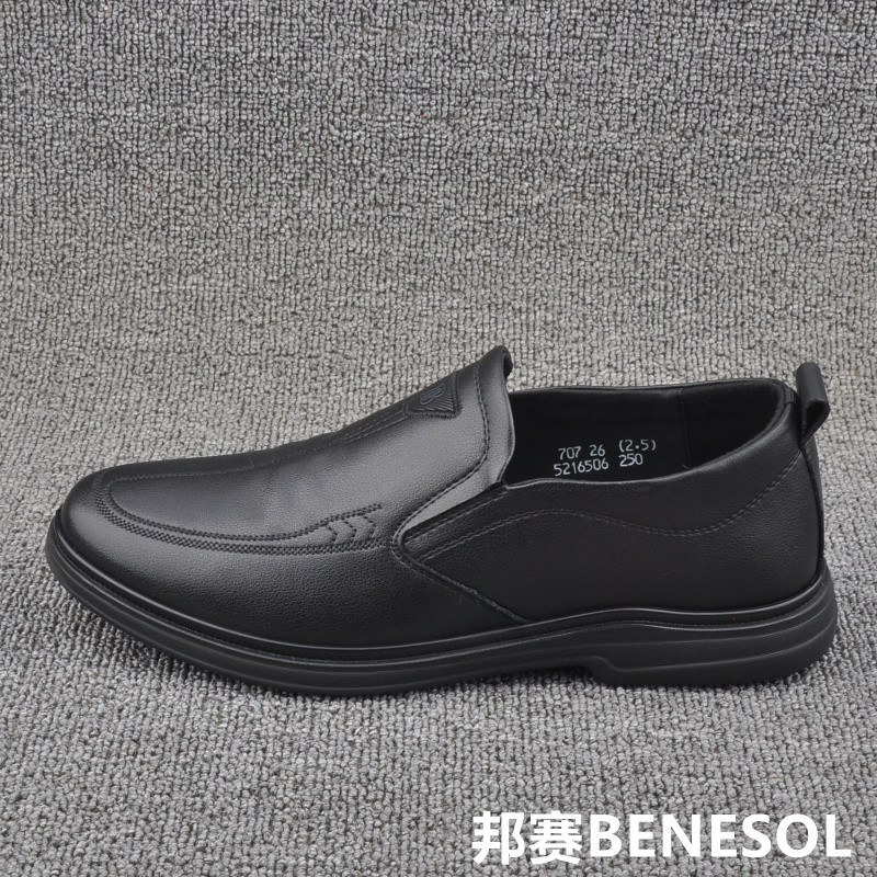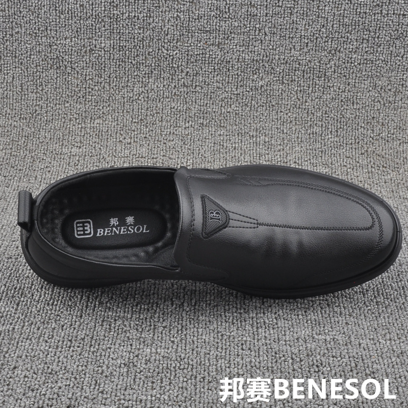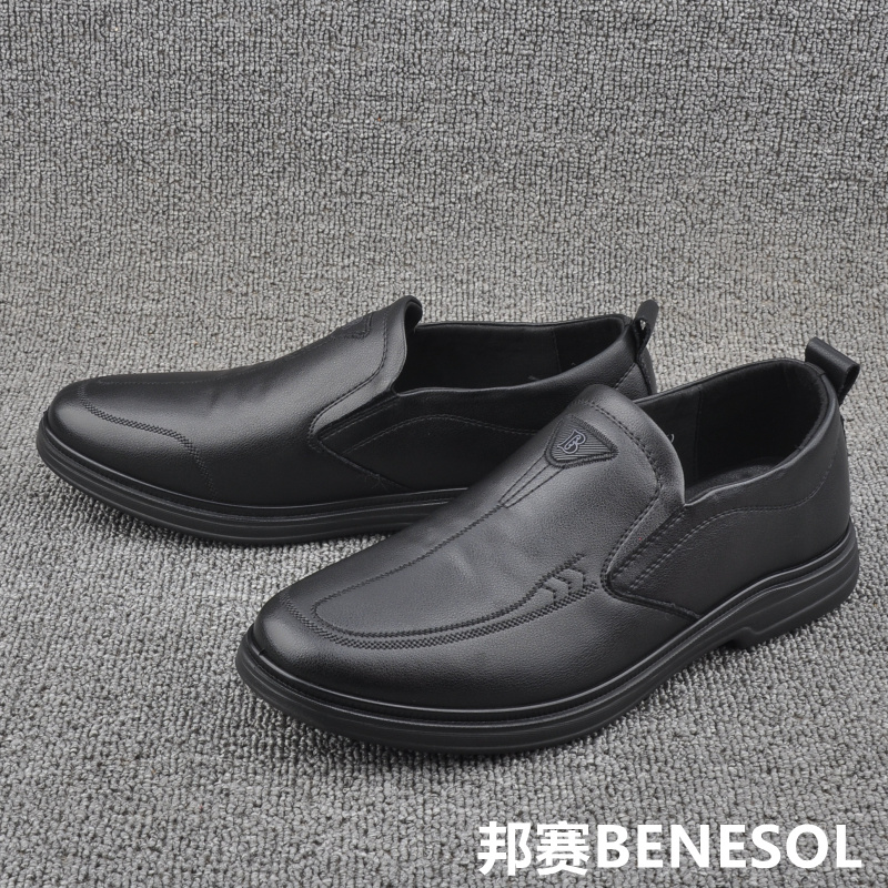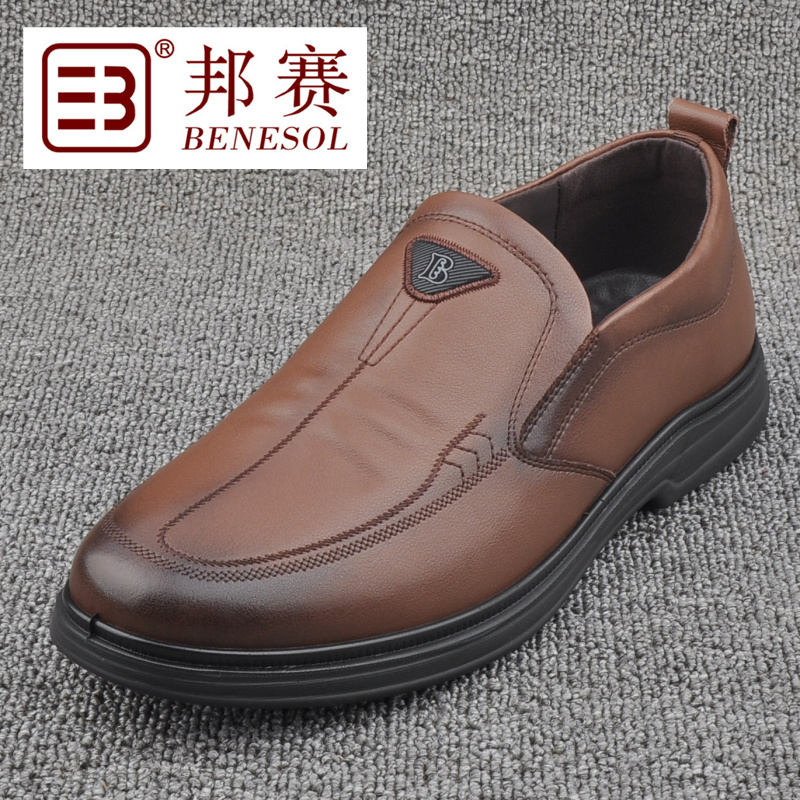 邦赛正品新款男头层真牛皮聚氨酯底轻巧防滑耐磨透气商务防臭鞋子