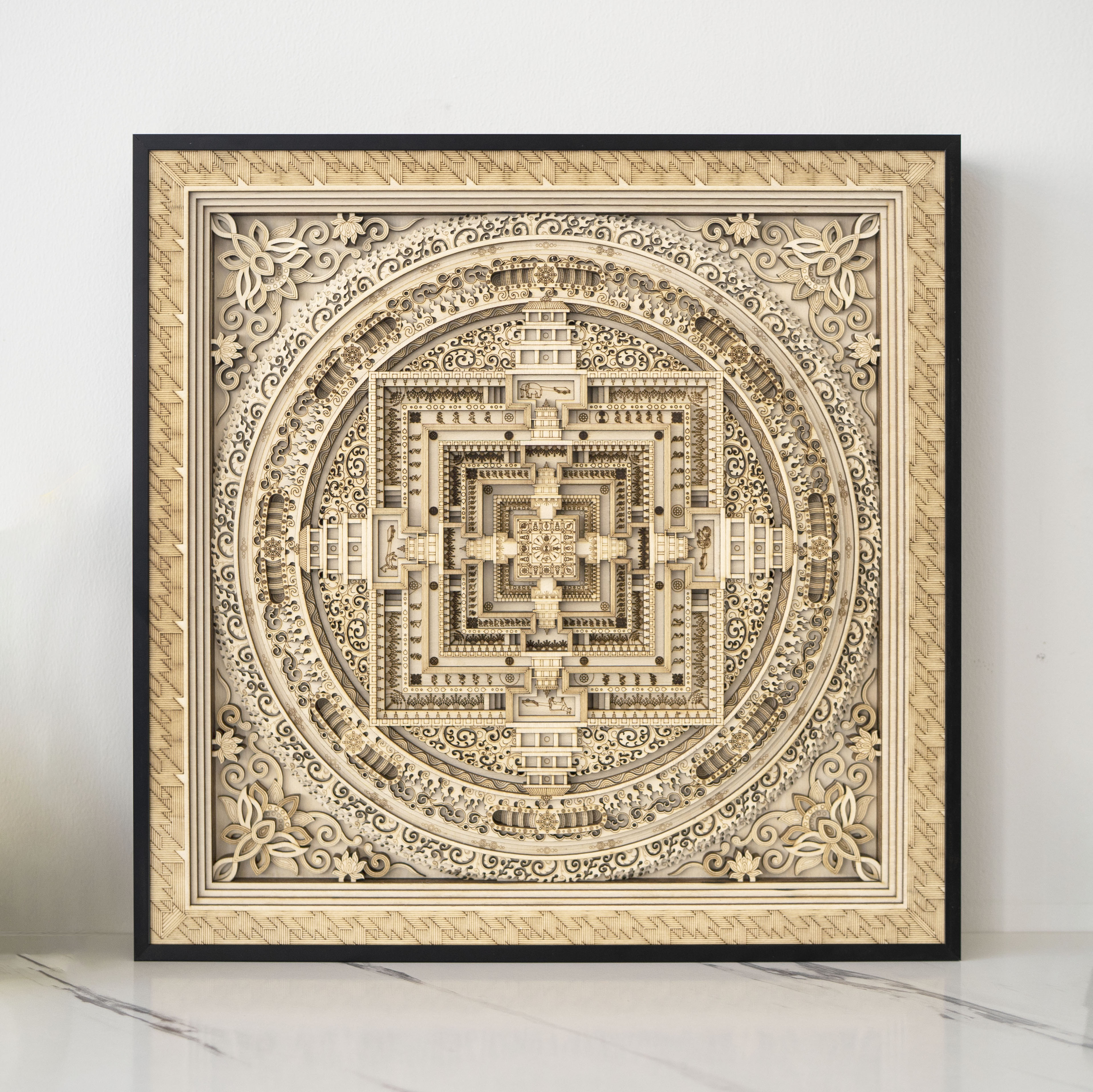梯木叠雕新中式客厅玄关墙面装饰曼陀罗时轮金刚坛城挂画镇宅装饰