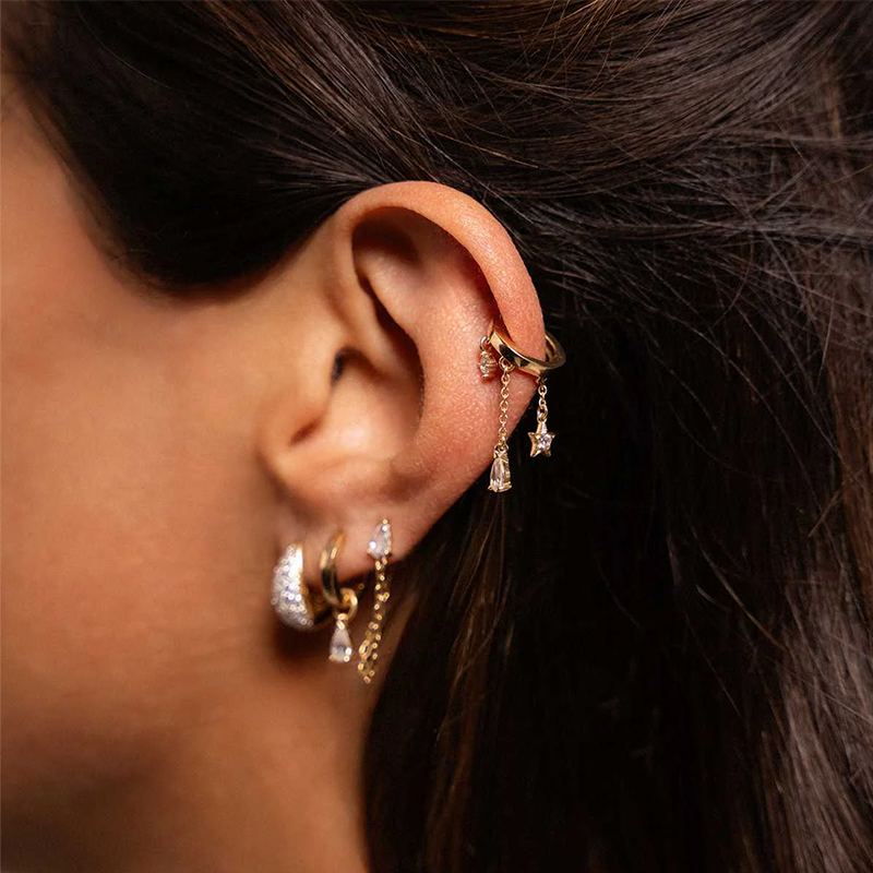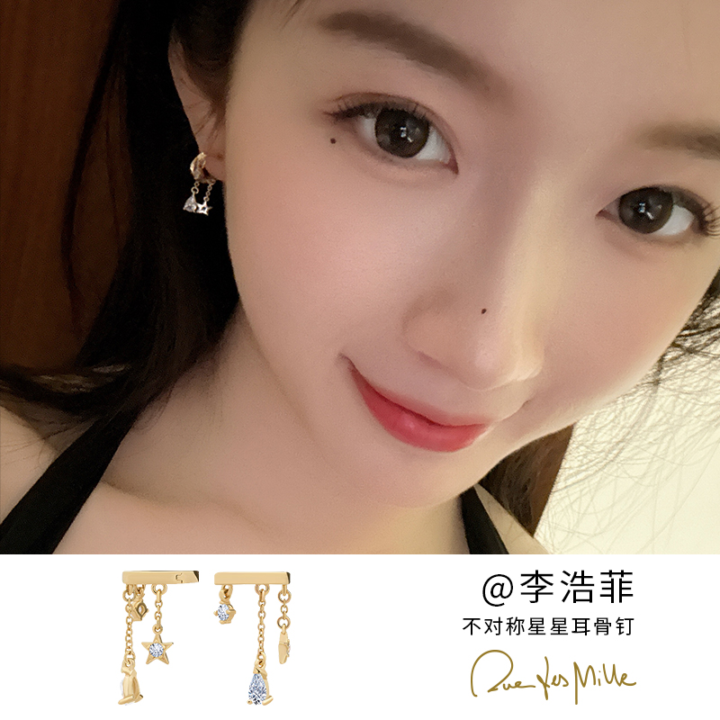 李浩菲同款 RuedesMille不对称星星流苏耳环锆石耳坠耳骨钉左耳款