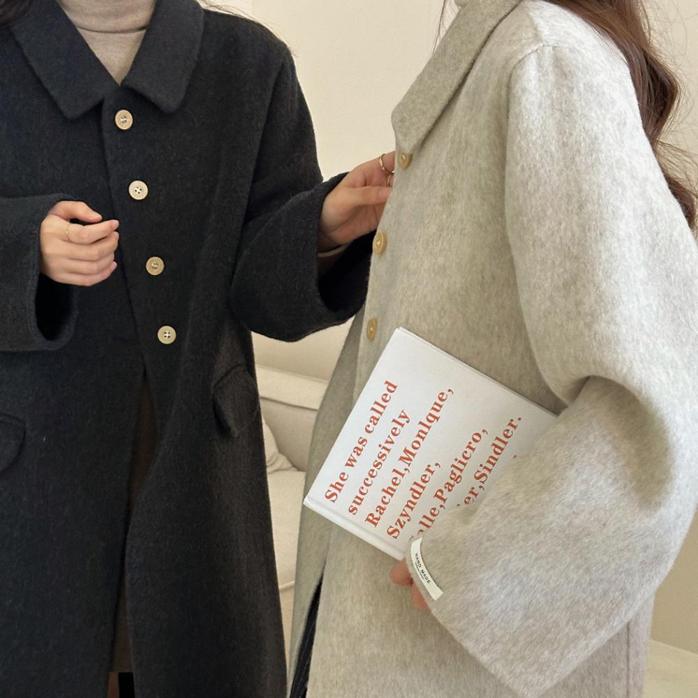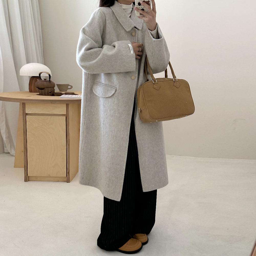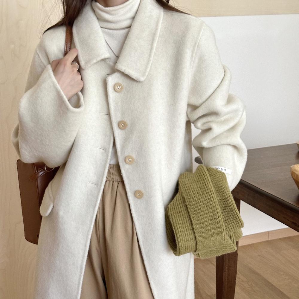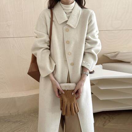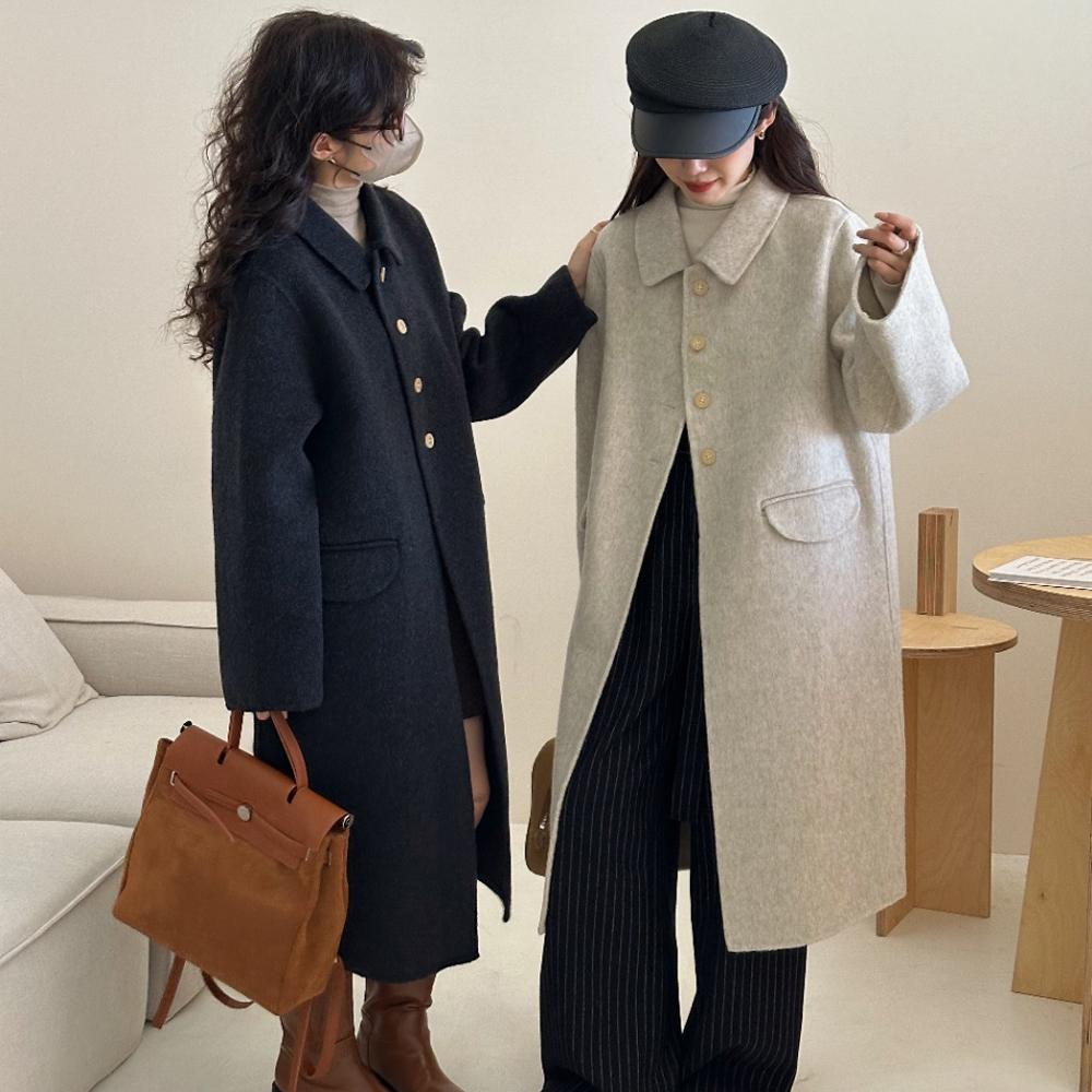 娃娃领高级感中长款简约单排扣双面羊毛大衣 加厚大袖口羊绒外套