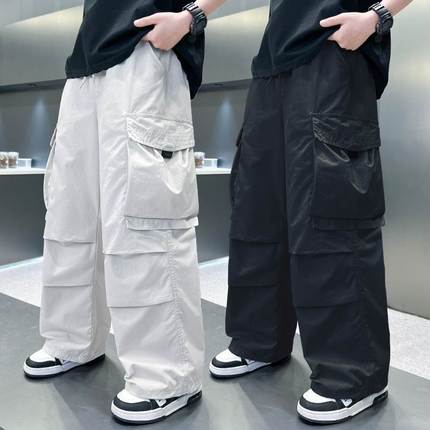 男童工装裤夏季薄款儿童裤子中大童直筒阔腿纯棉休闲裤夏装防蚊潮