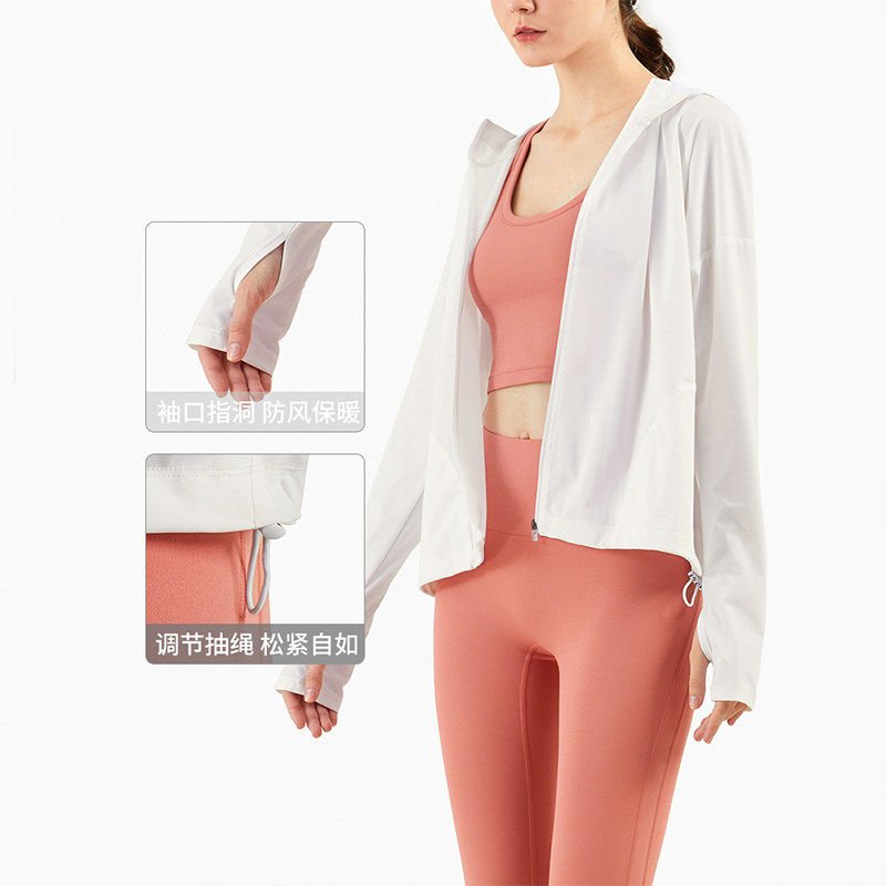 秋冬运动外套女连帽衫宽松瑜伽上衣速干跑步健身服防晒户外冲锋衣
