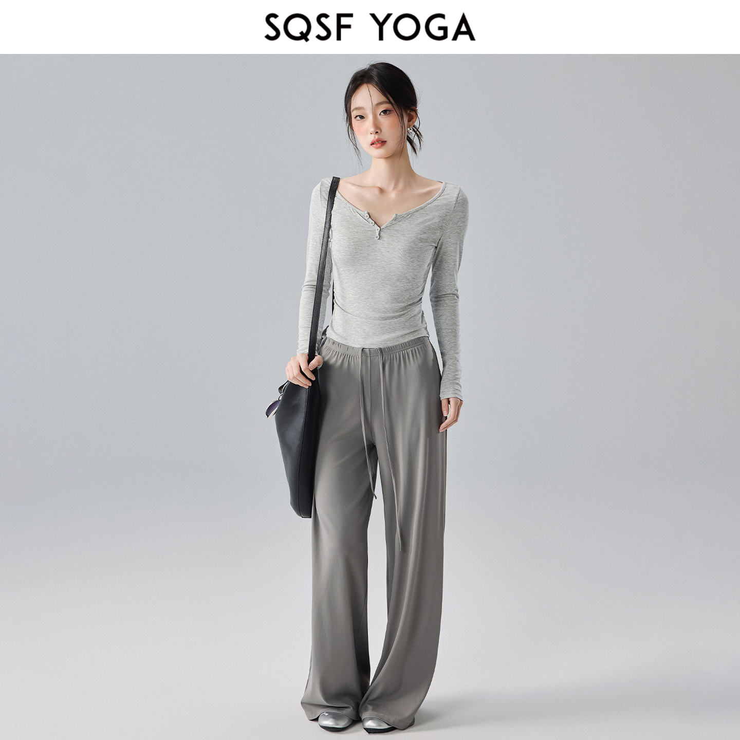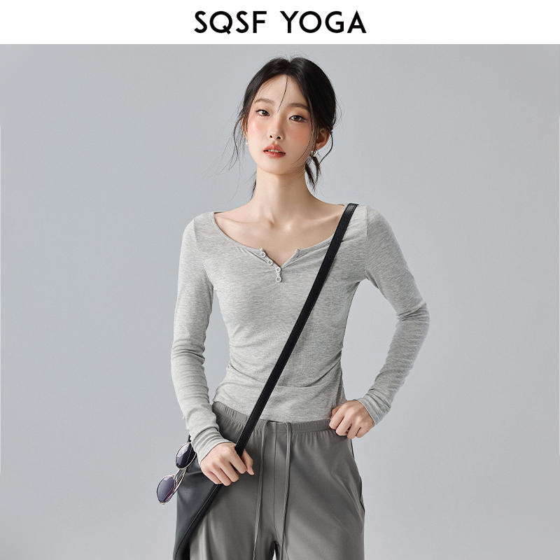 SQSF运动上衣女新款修身亨利衫跑步健身长袖普拉提训练瑜伽服套装