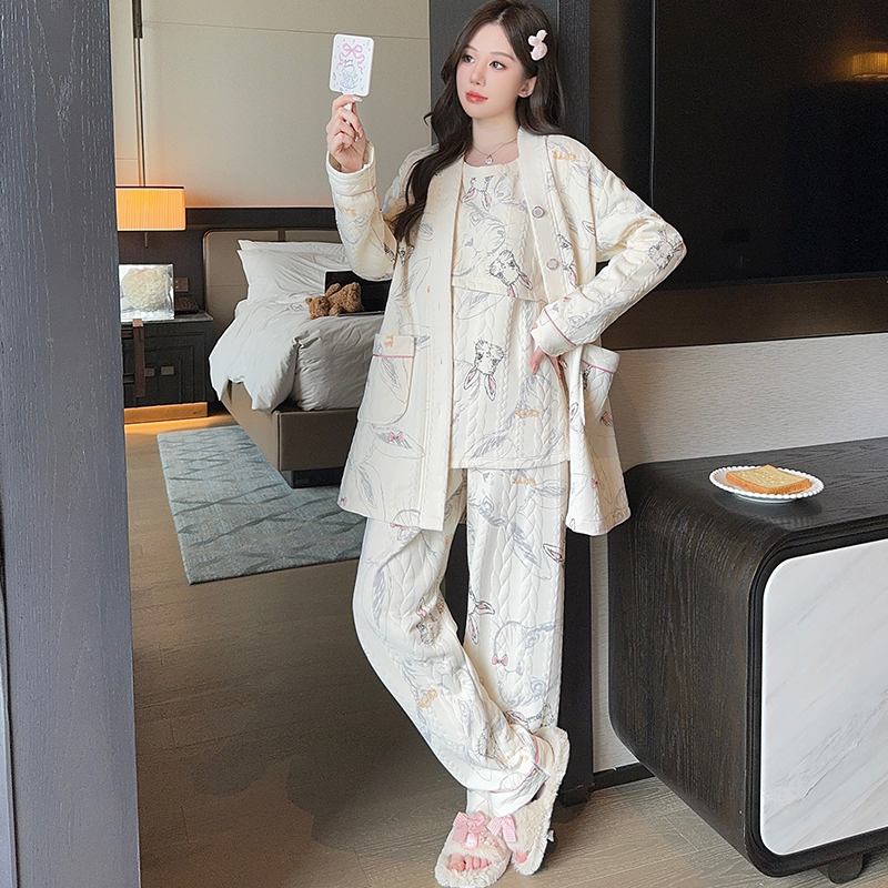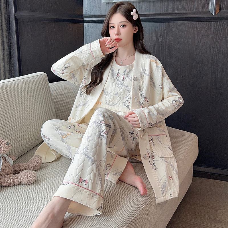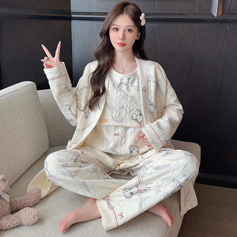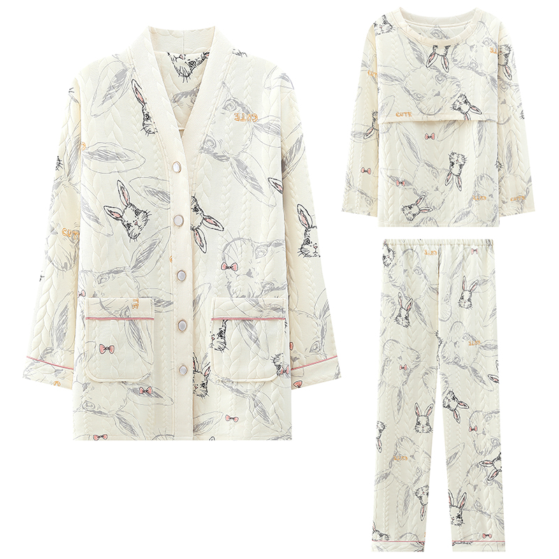 三件套空气棉月子服秋冬季纯棉11月份12产后哺乳孕妇睡衣产妇厚款