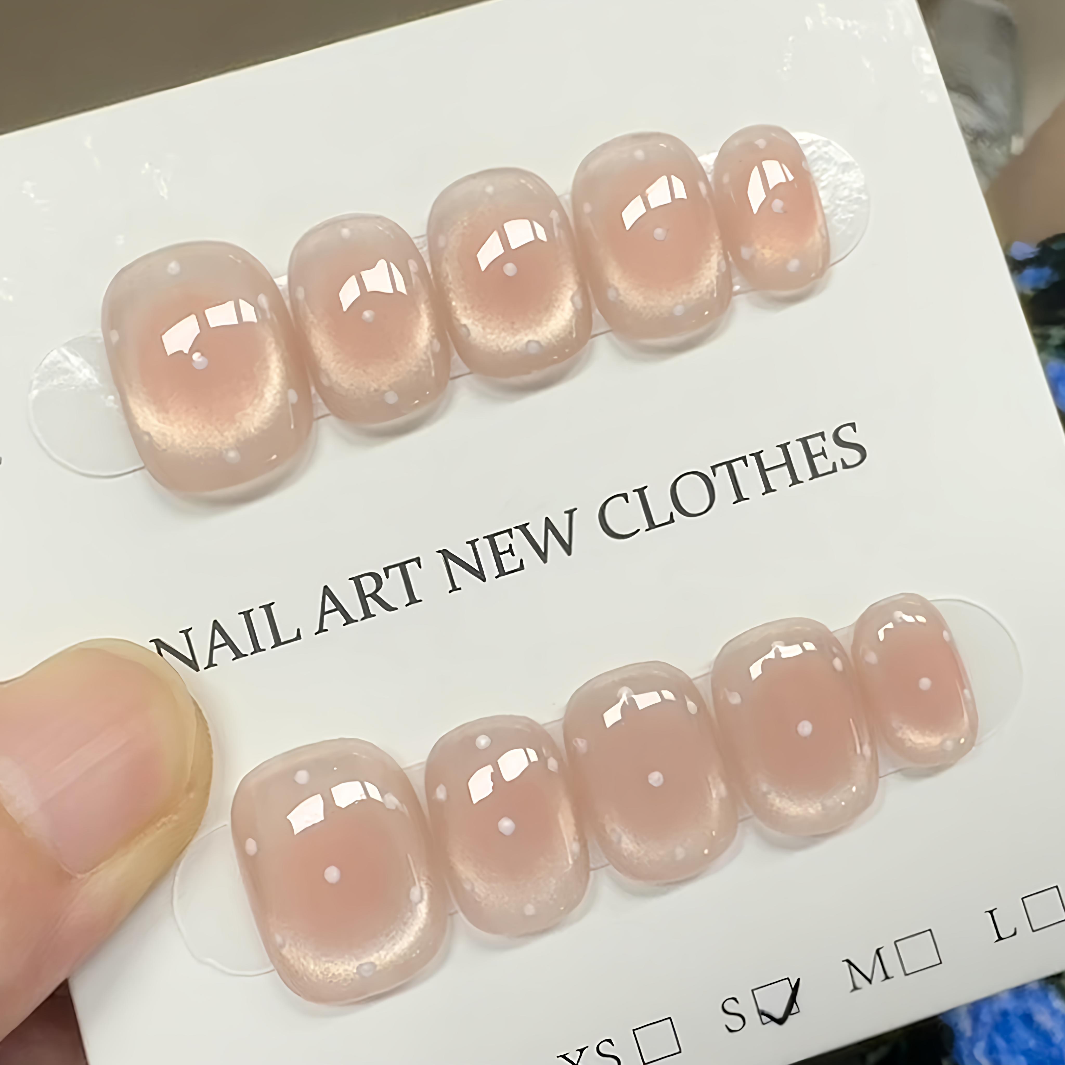桃子汽水纯手工穿戴美甲手绘波点时尚简约显白假指甲美甲贴片10片