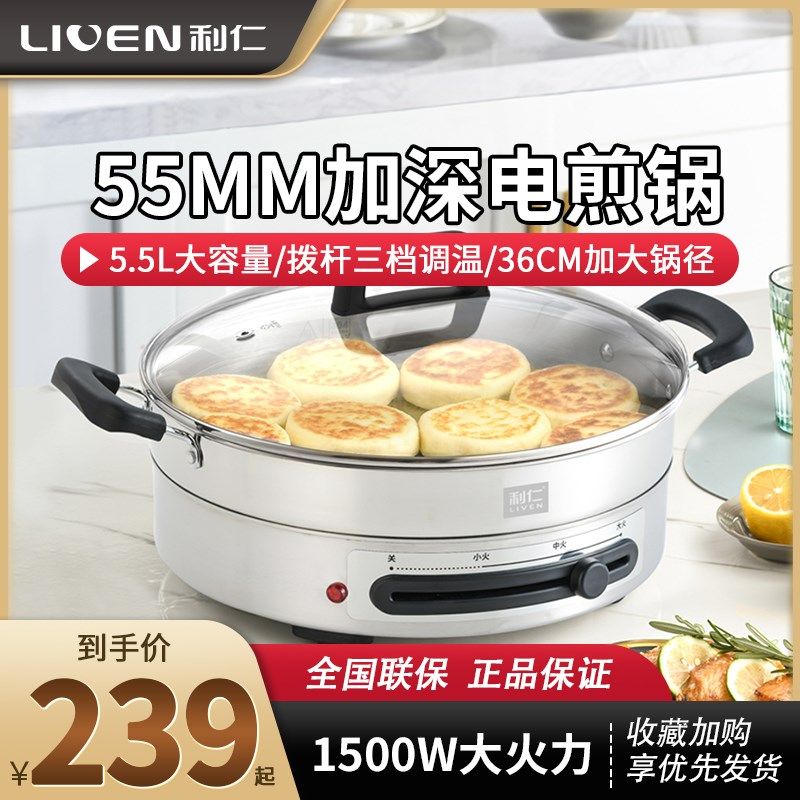 利仁电煎锅不锈钢电饼铛家用新款加深加大3/cm多功能烙饼煎烤锅