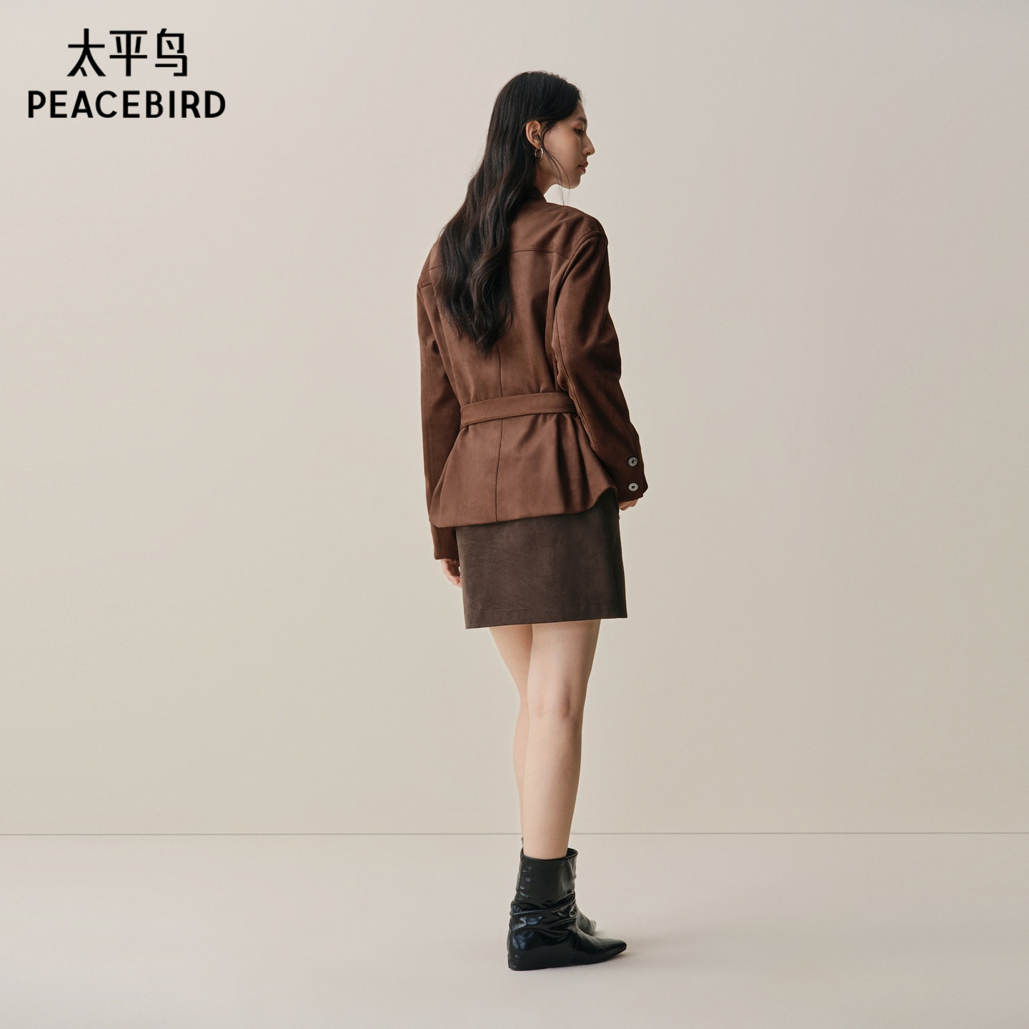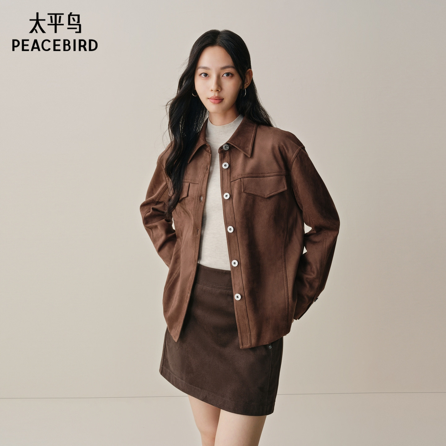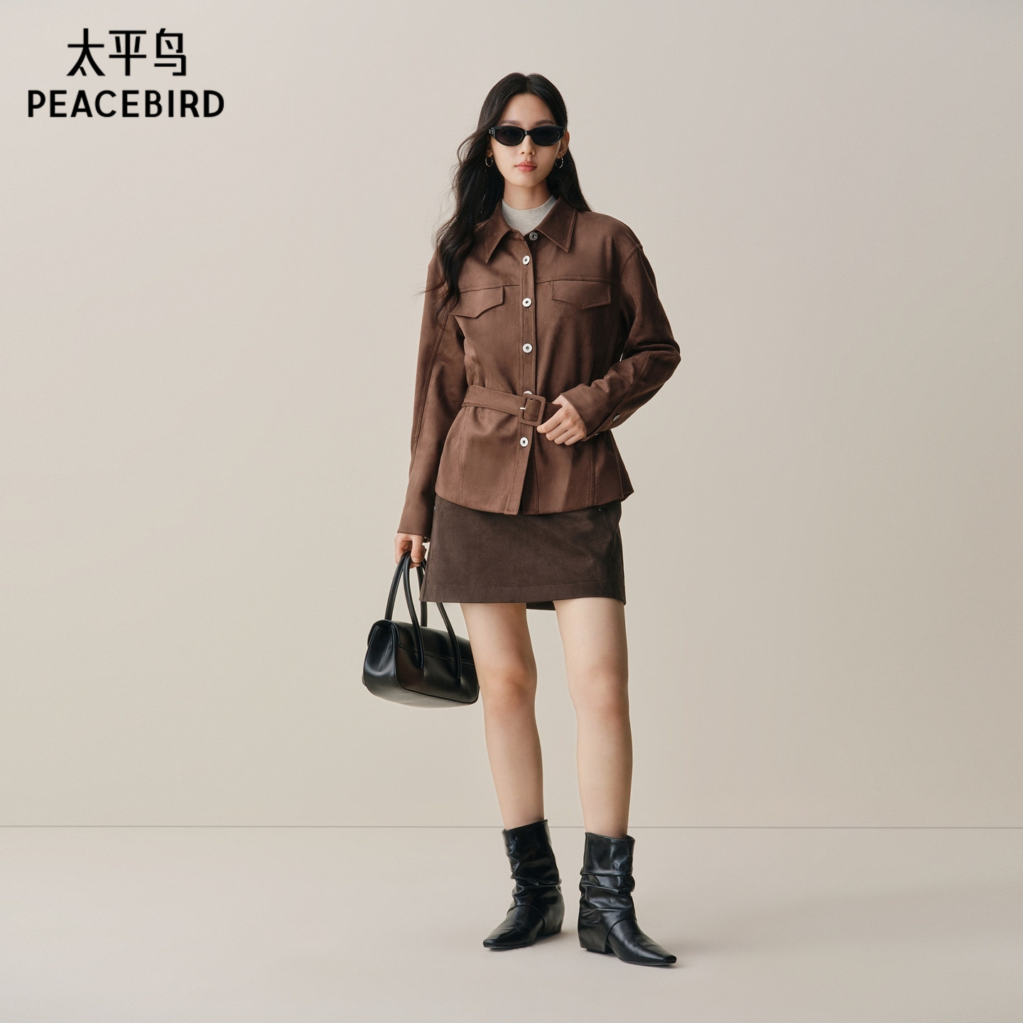 【商场同款】太平鸟25冬季新款麂皮可调节腰带长袖衬衫A3CAF4A13