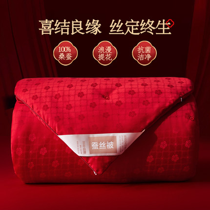 恒源祥婚庆抗菌100桑蚕丝被芯提花四季双人陪嫁婚礼结婚秋冬被子