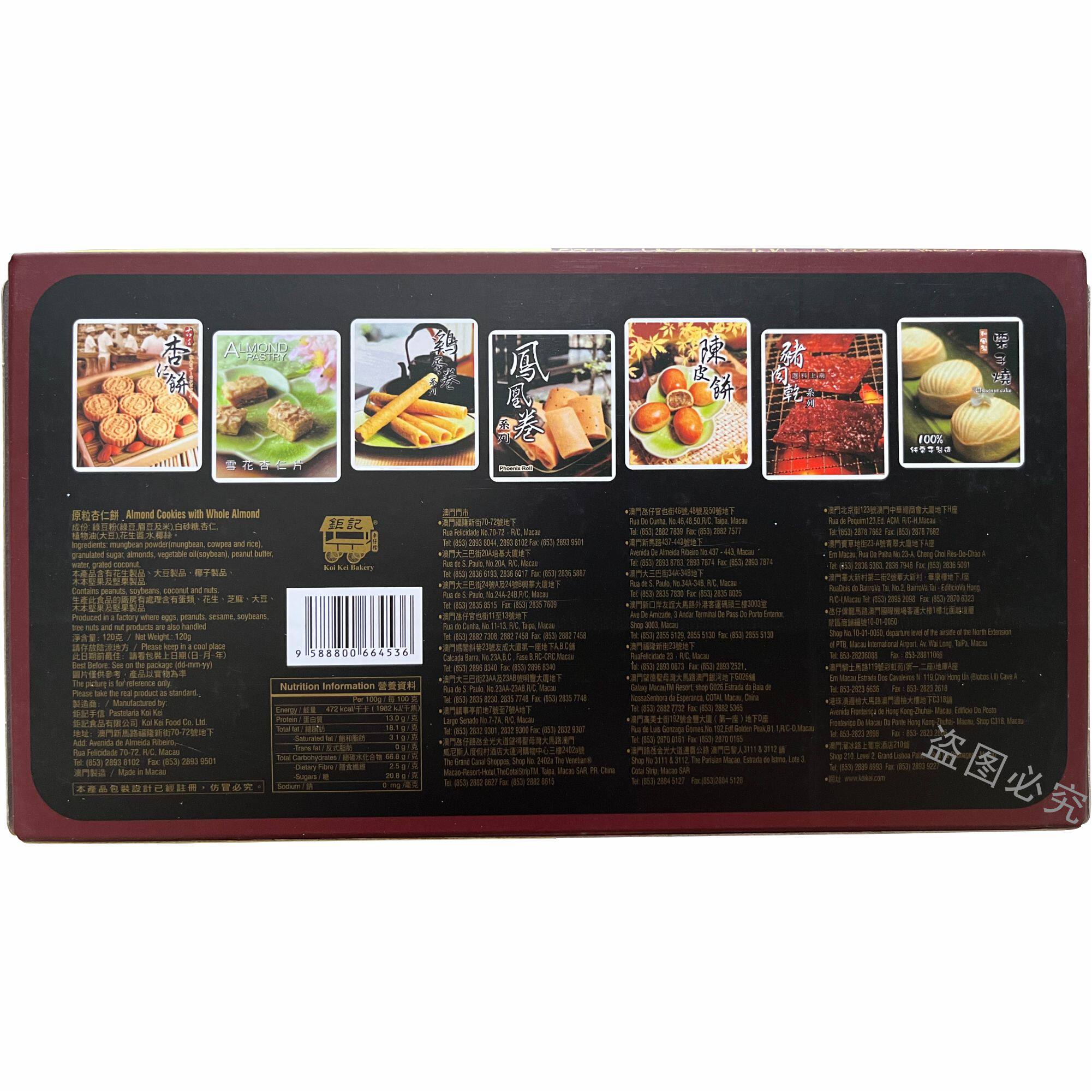 澳门钜记饼家原粒杏仁饼黑芝麻海盐蛋黄肉松特产手信伴手礼包送礼