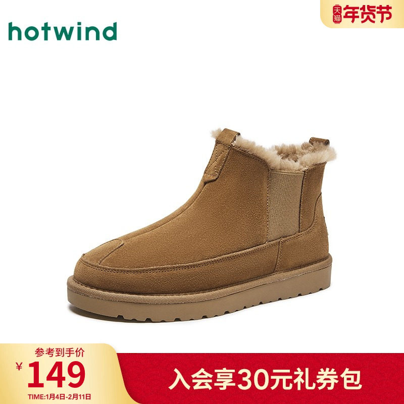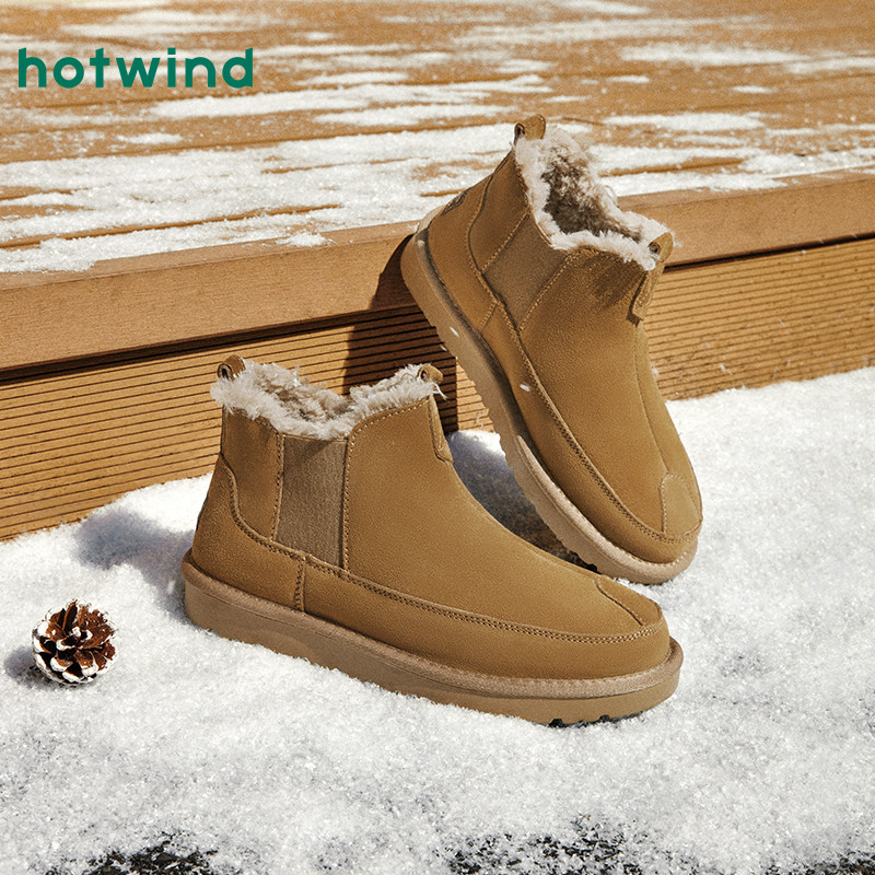 热风男鞋冬季新款男士时尚棉靴松紧带加绒保暖套筒雪地靴子