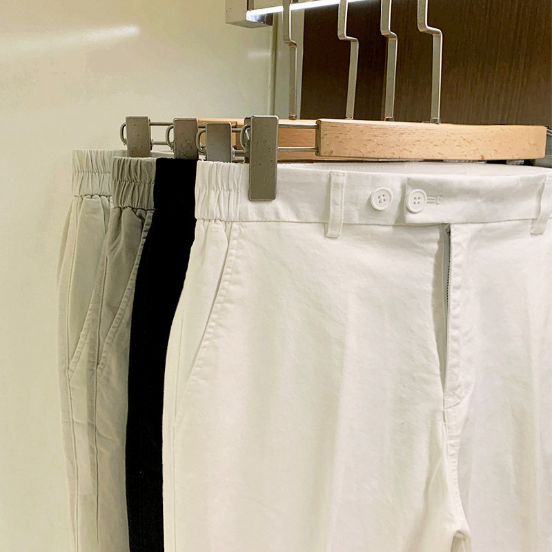 秋季新款潮流修身九分裤水洗松紧腰裤子男款高级白色直筒休闲裤男