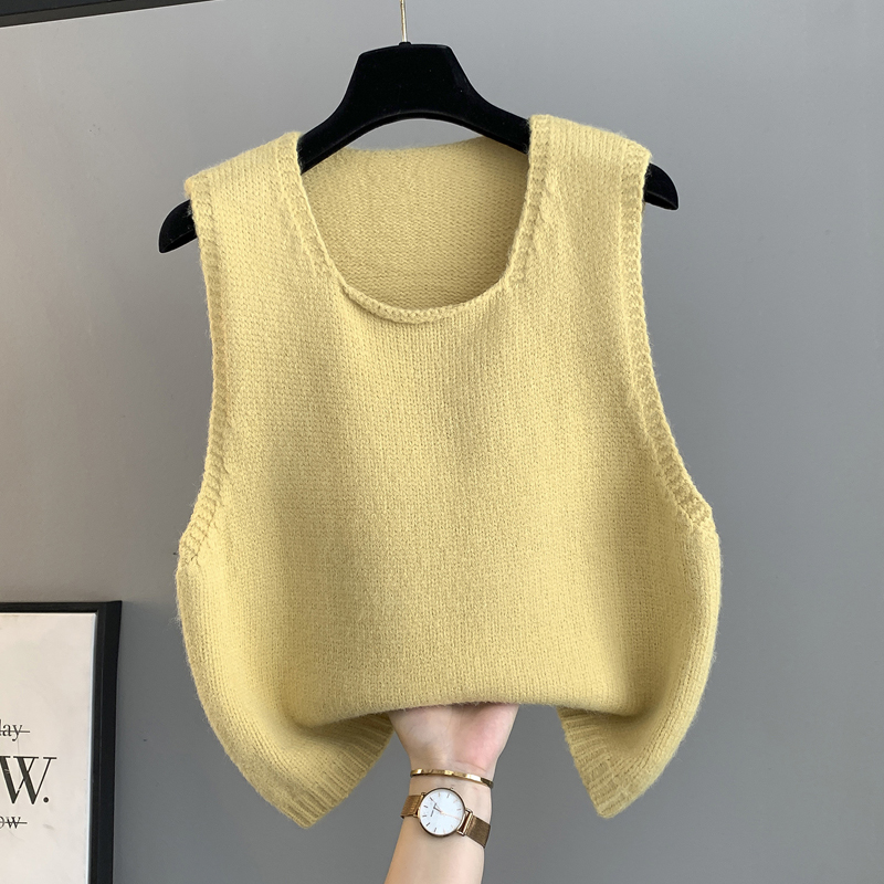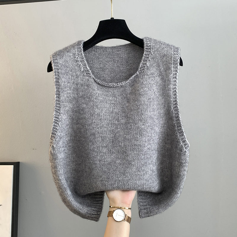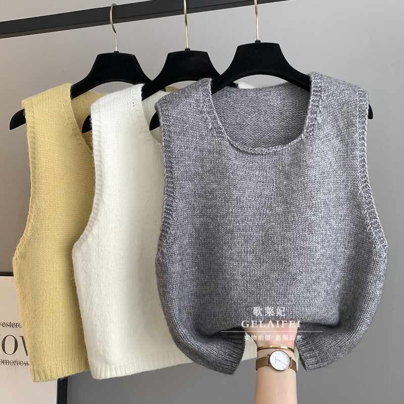 韩系高级感圆领针织马甲女2025新款宽松叠穿无袖短款纯色坎肩背心