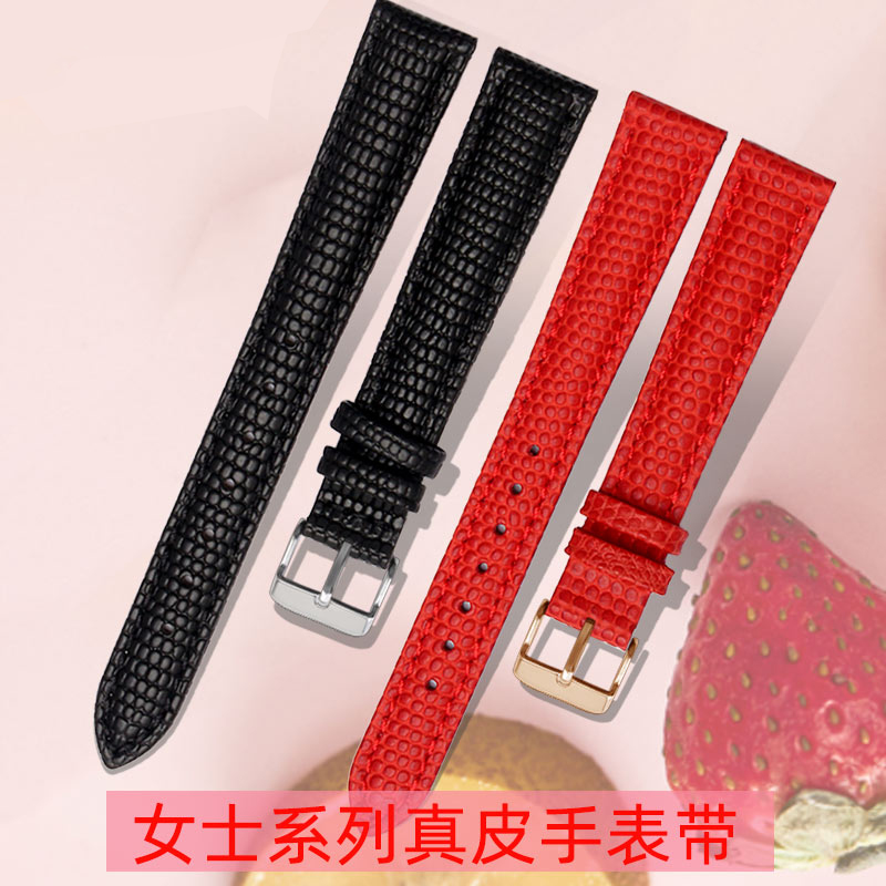 女真皮手表带10 12 14白红粉色适配阿玛尼满天星化石卡西欧罗西尼