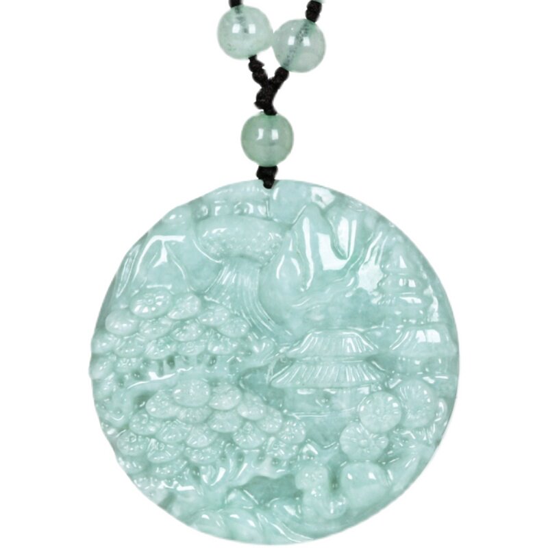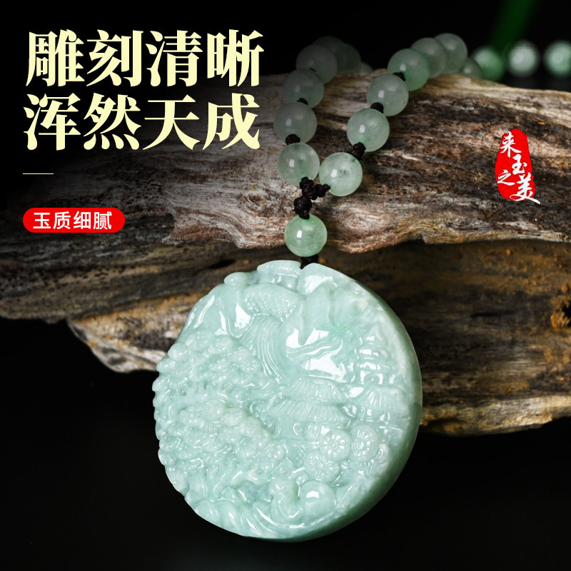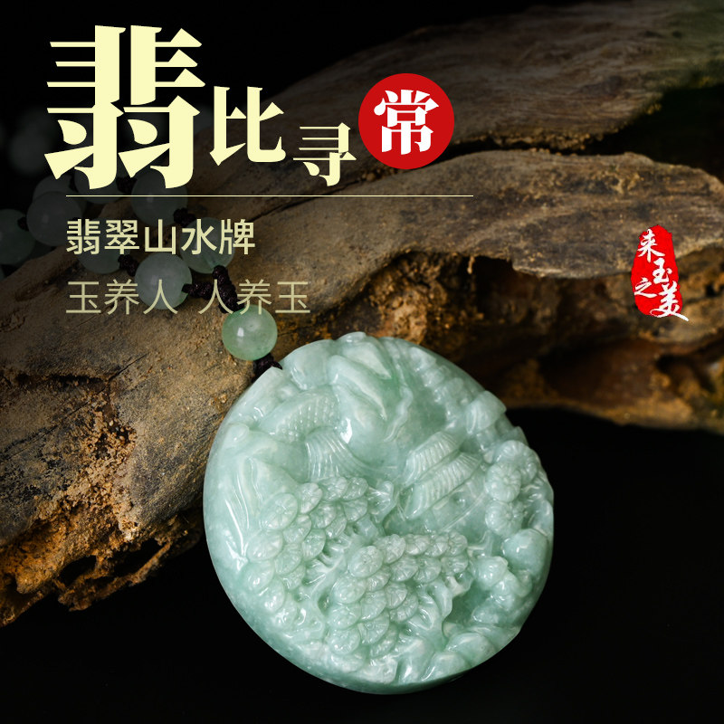 天然珠宝缅甸A货翡翠山水牌吊坠冰糯种玉石挂件大号男女玉坠项链
