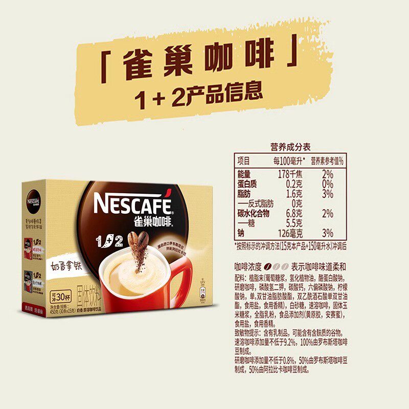 雀巢咖啡1+2原味特浓奶香多口味30条三合一速溶咖啡熬夜提神正品