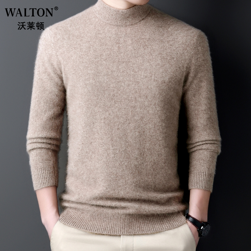 鄂尔多斯市羊绒衫男士100%纯羊绒衫冬季加厚中老年纯色针织打底衫