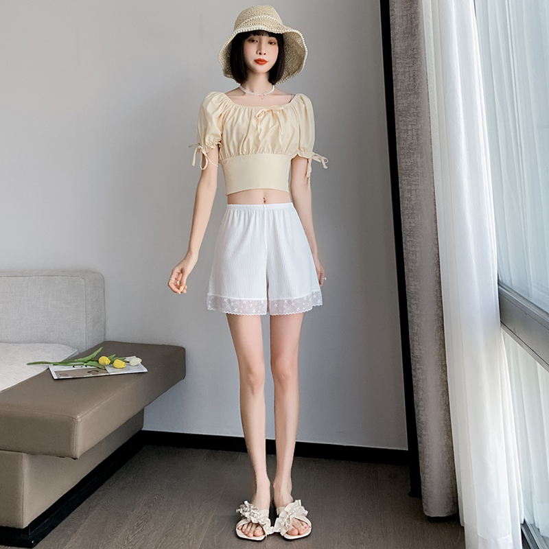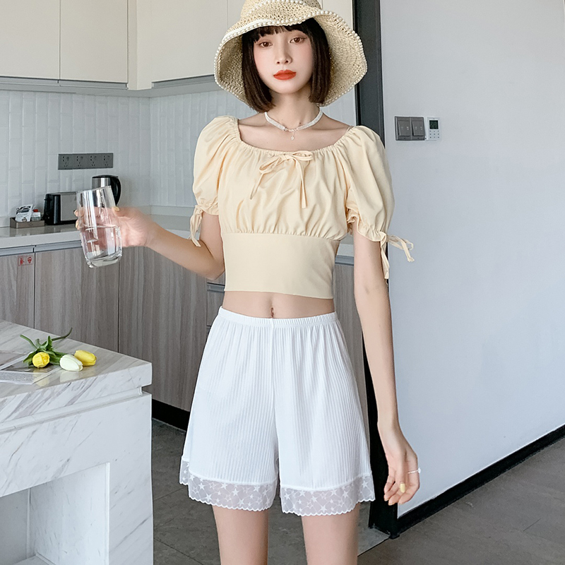 柔软亲肤!松紧腰弹力蕾丝花边冰丝三分安全裤短裤打底裤女夏